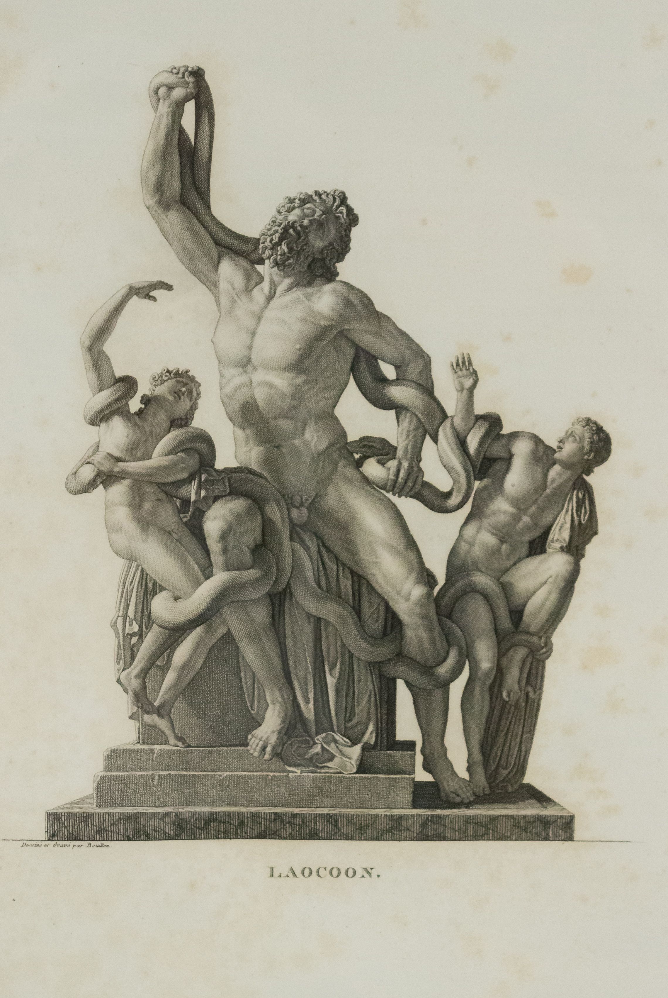 5 Italian (19th Cent) Neo-classic engravings depicting Roman statuary/mythological themes framed in silverleaf moulding with matting (PRICED EACH).