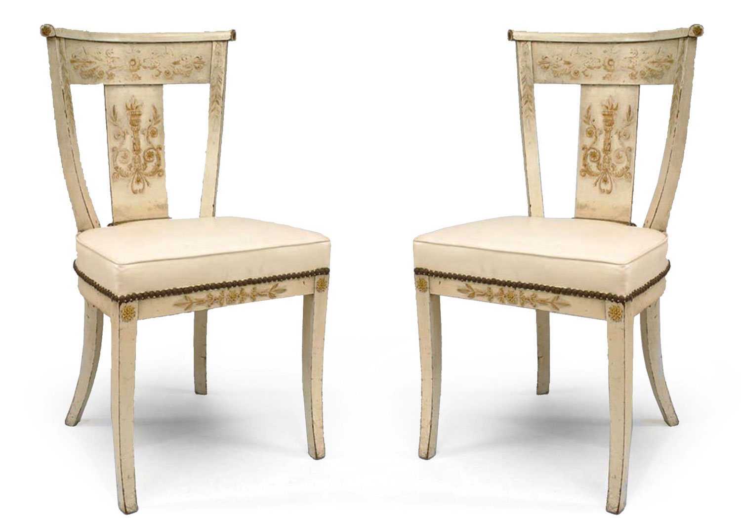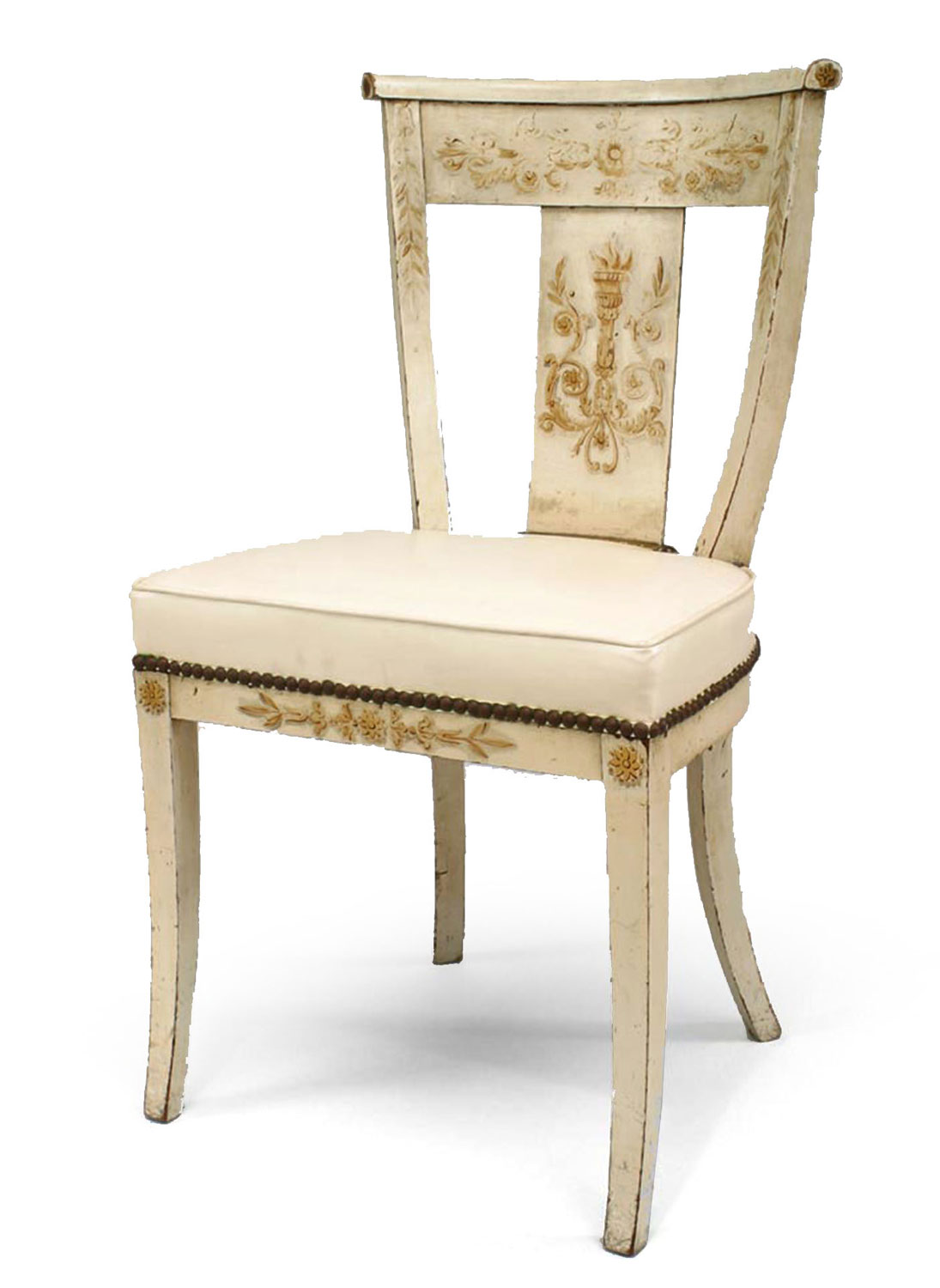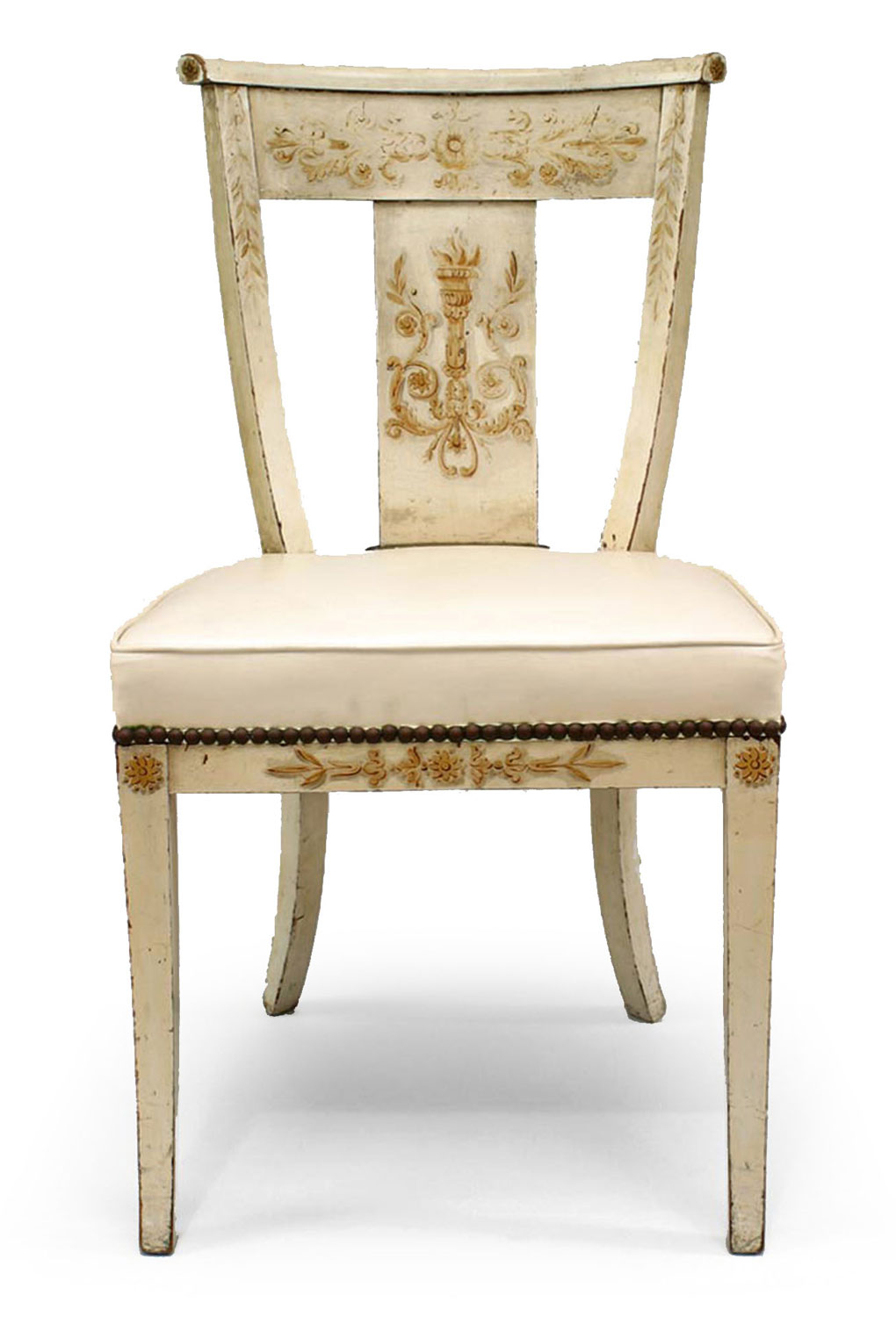 SET of 4 Italian Neoclassic white painted and floral decorated side chairs (19th Century)