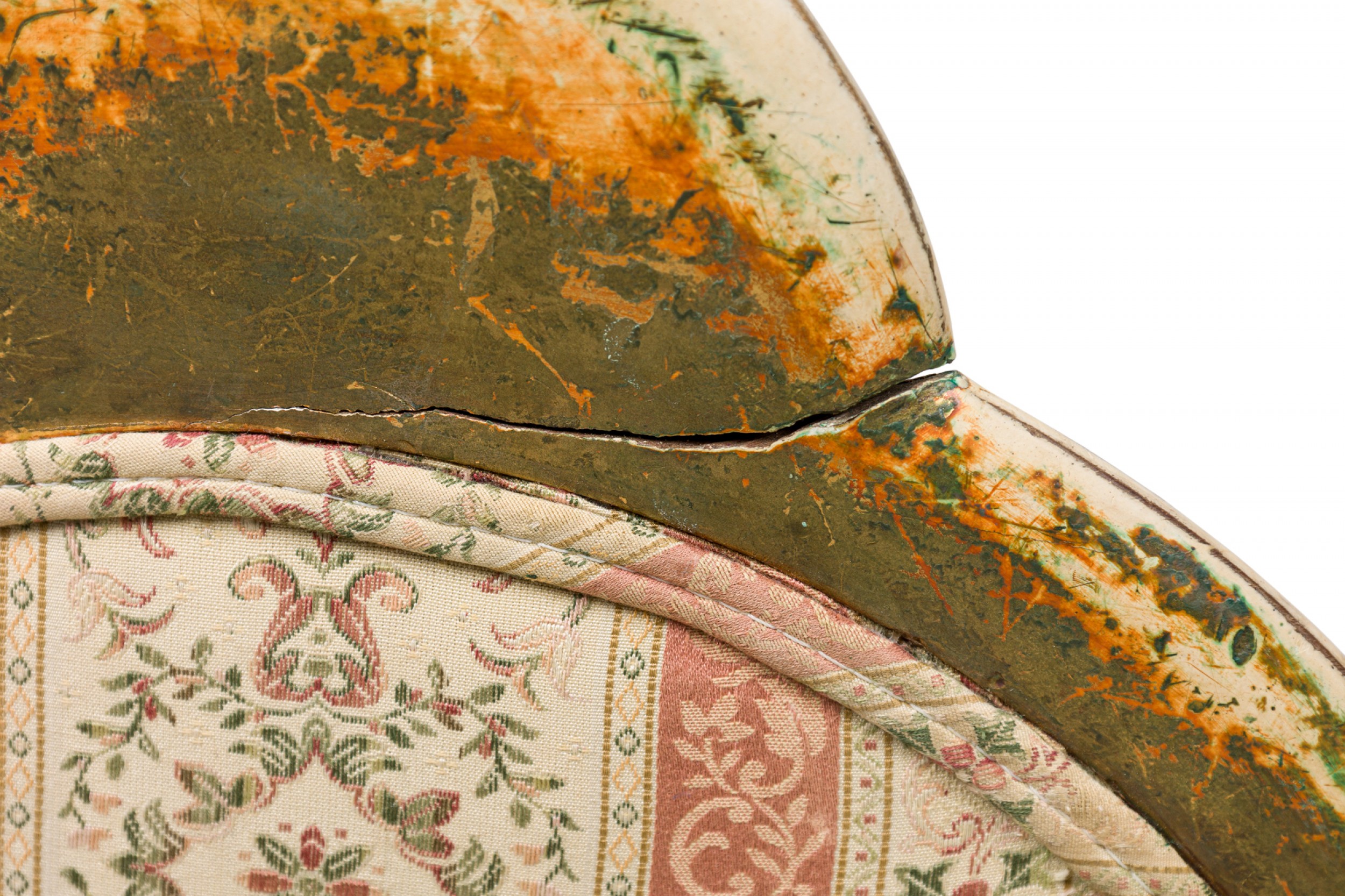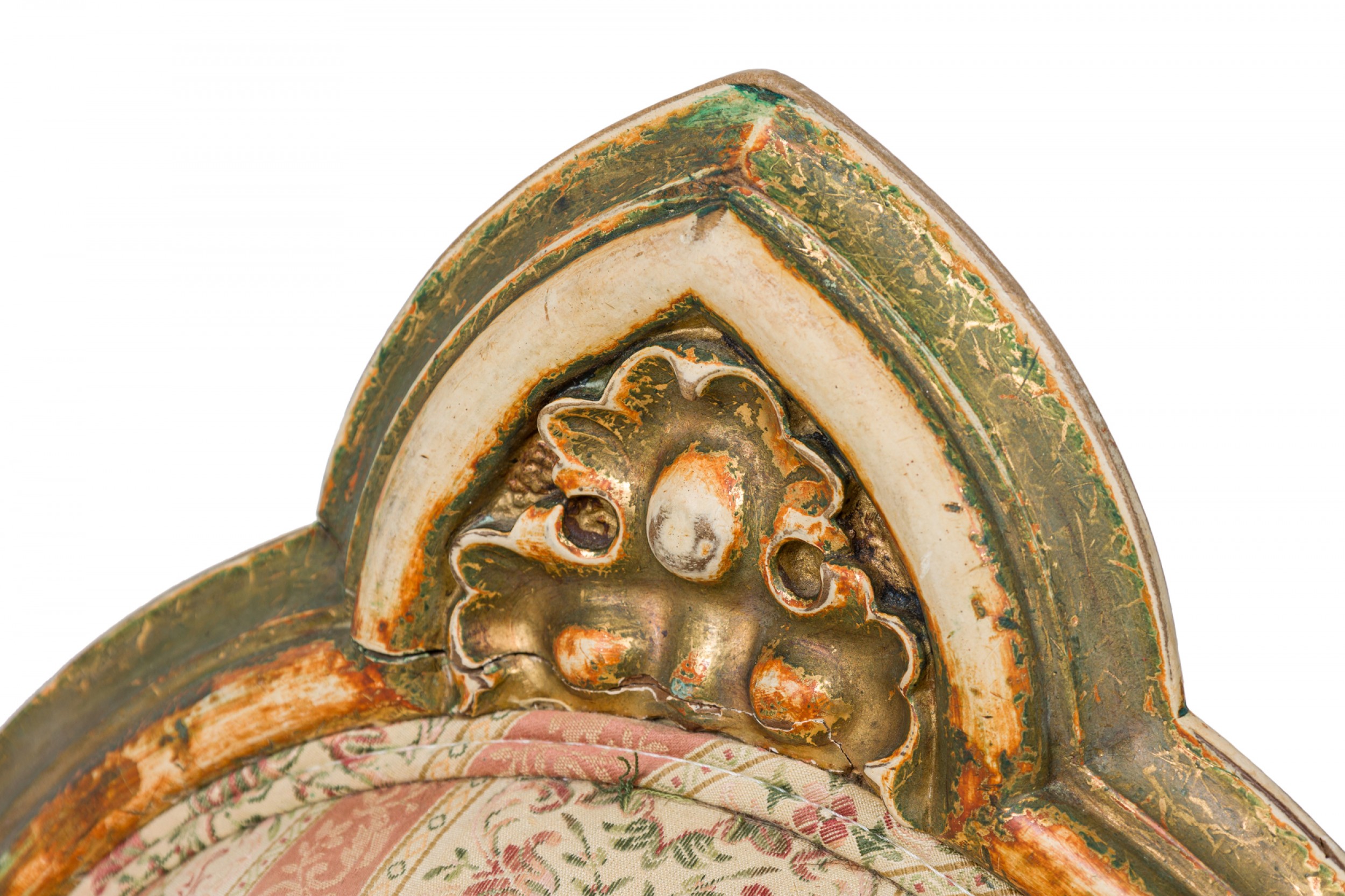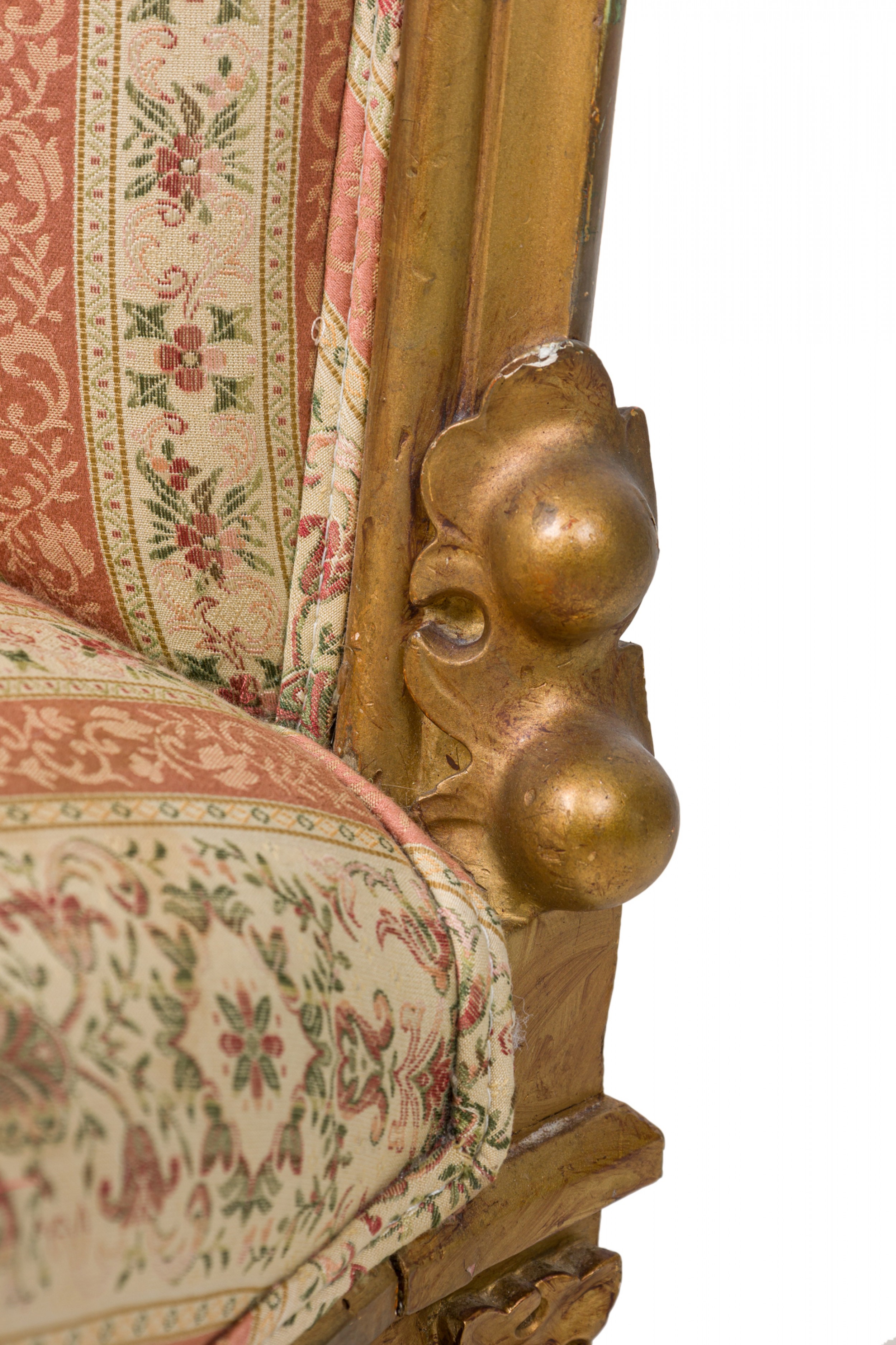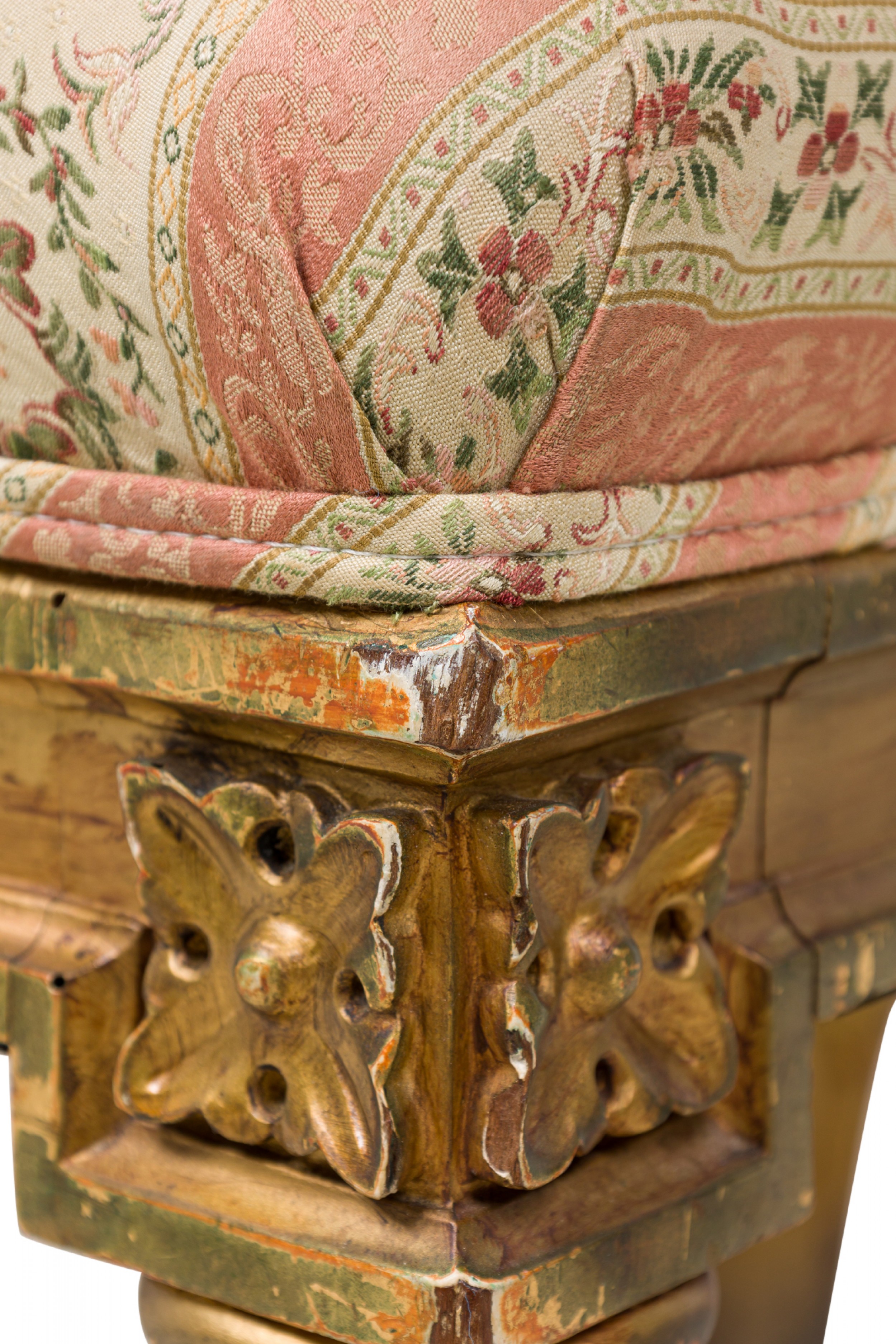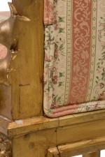 Style: Italian Materials & Techniques: Carved, fabric, gilt / giltwood, upholstered, wood Category: Seating Condition: Some losses to gilt finish. Good; Wear consistent with age and use