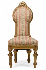 Italian Neo-Classic Giltwood & Stripe Upholstered Dining / SIde Chair