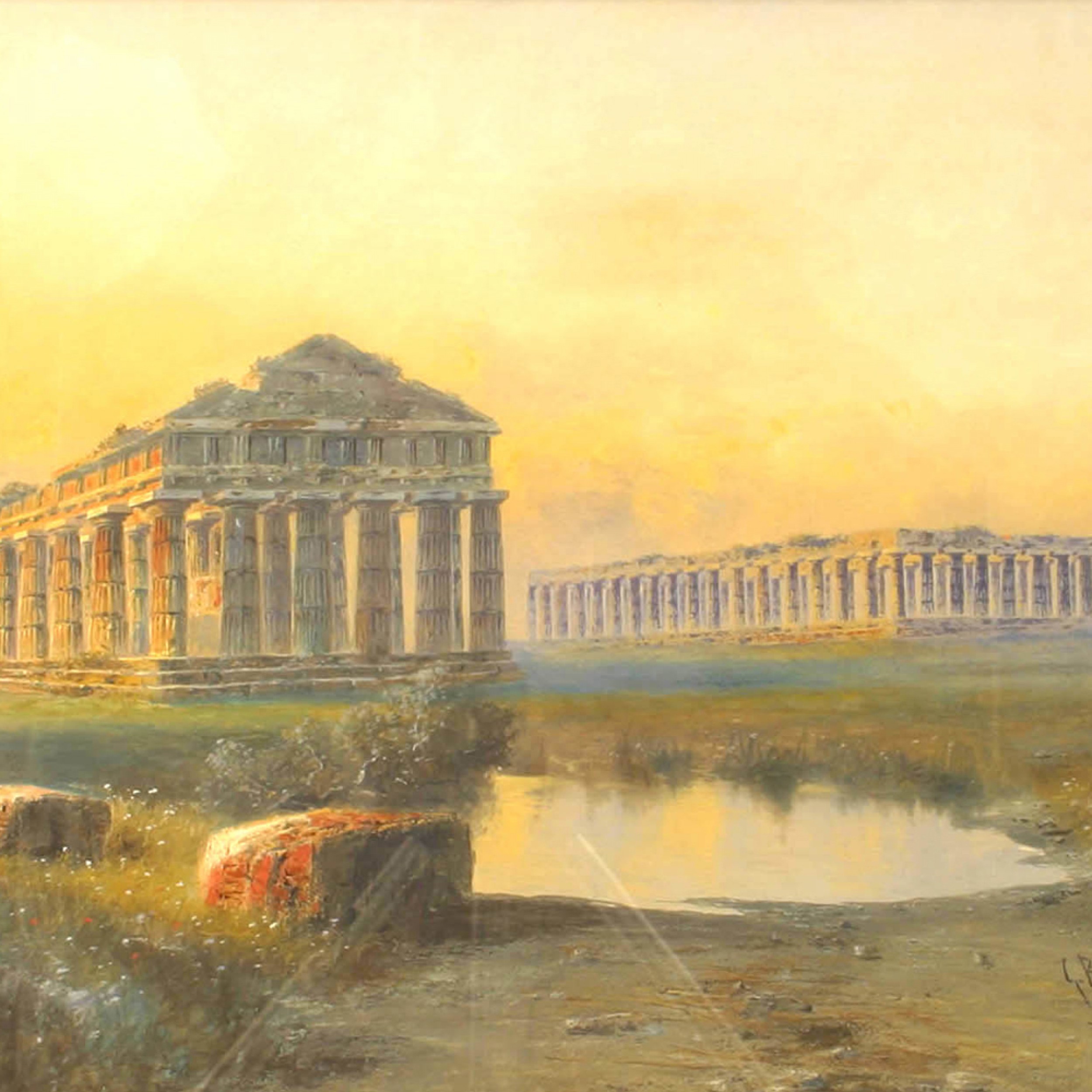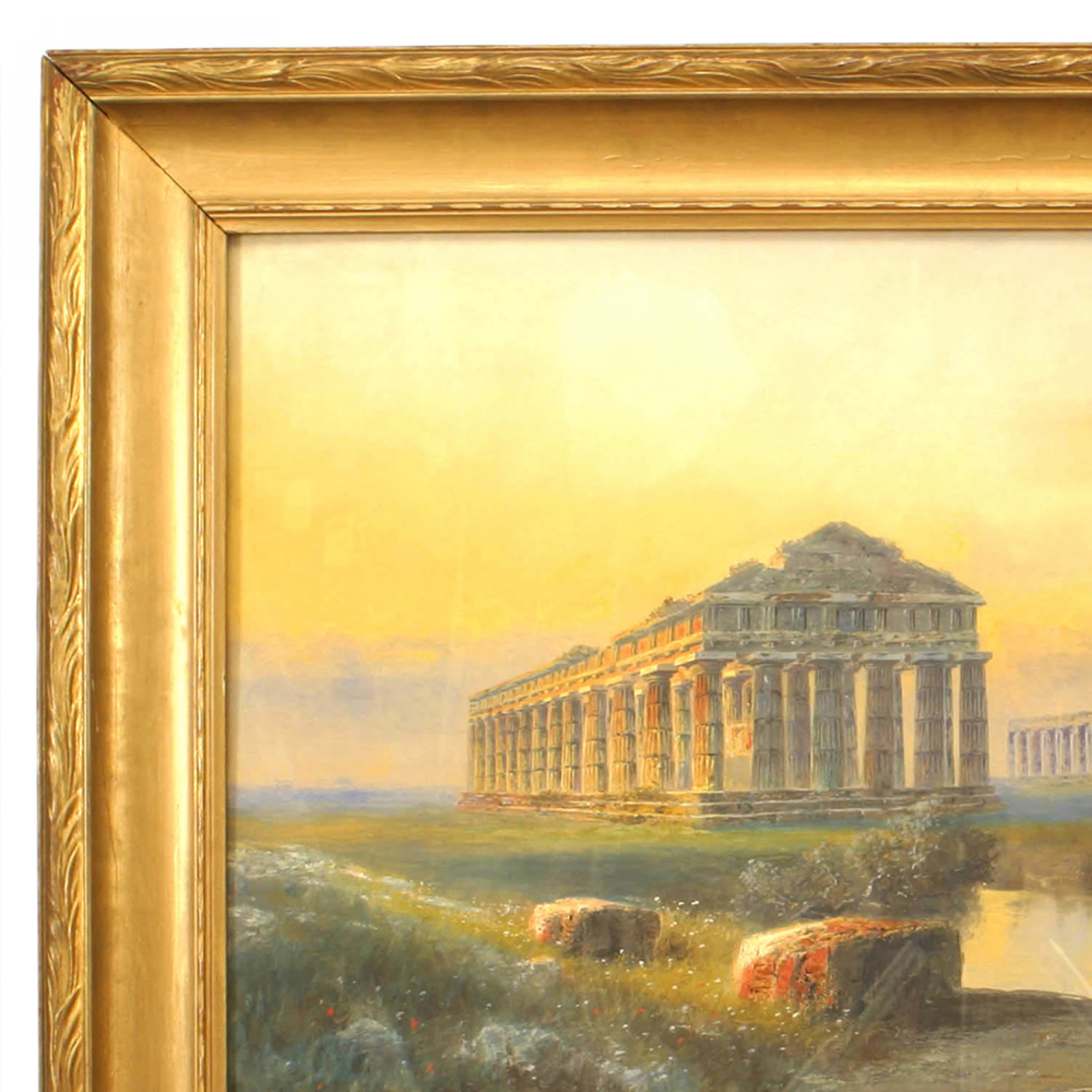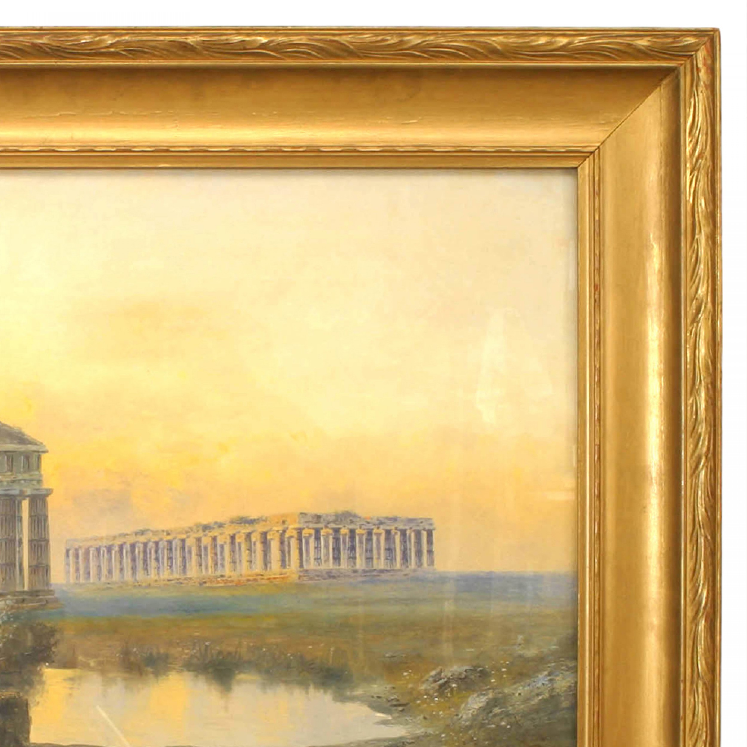 Italian pastel/mixed media depicting roman ruins in a landscape framed in giltwood frame (signed G. (IOVANNI) BATTISTA (1858-1925)