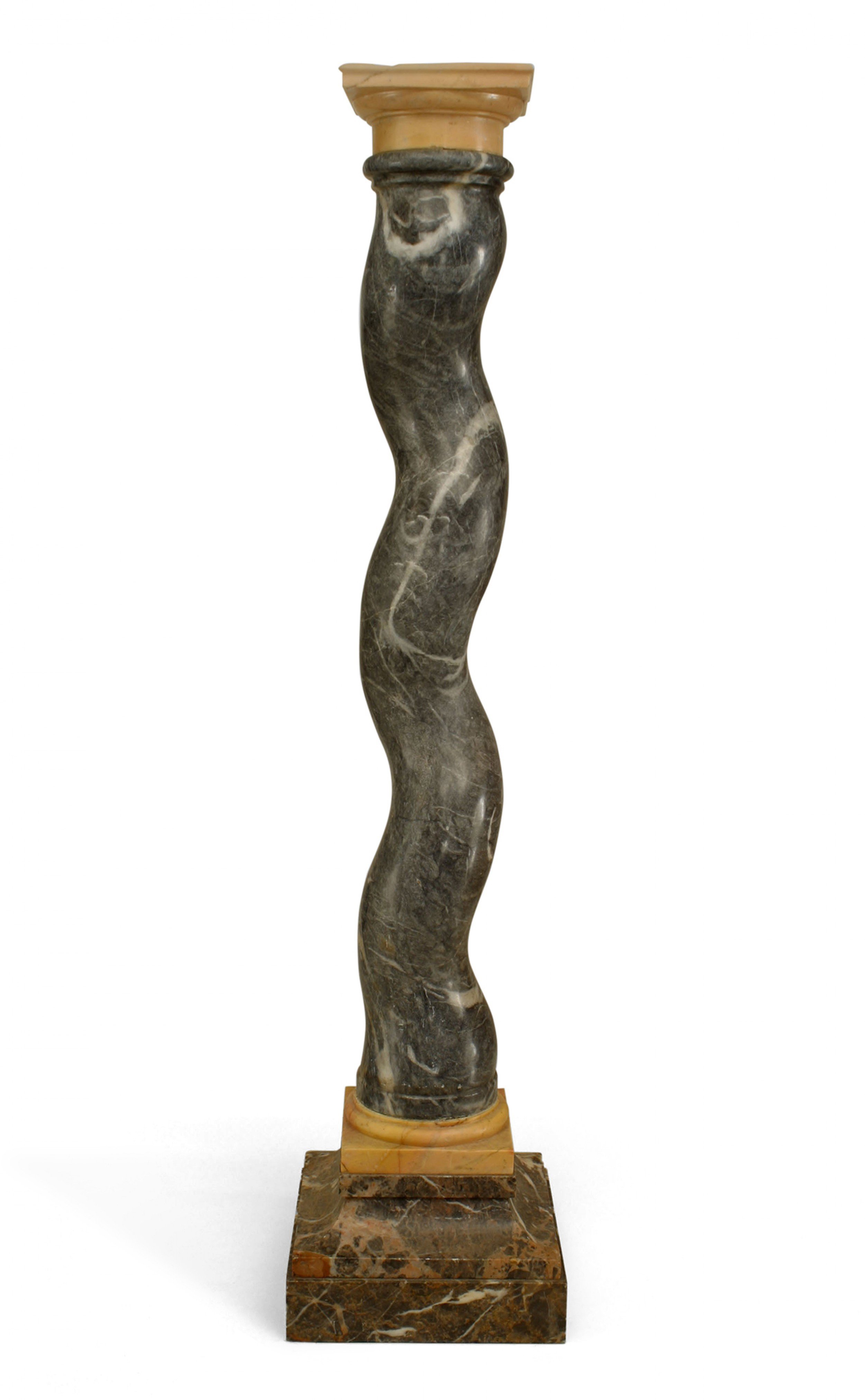 Italian Neo-classic style (19/20th Cent) green and Siena trimmed swirl marble column pedestal with a square base and top.