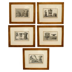 Italian Neo-classic style print of various military arms, armor, and objects matted in stained walnut frame (part of a set of 15; associated pieces: 040101A-040101O)