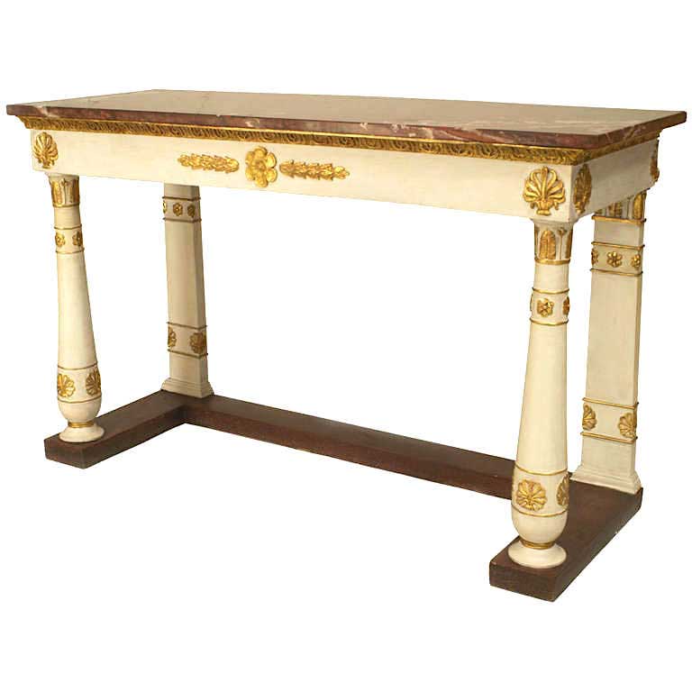 Italian Neo-Classic Painted Marble Top Console Table