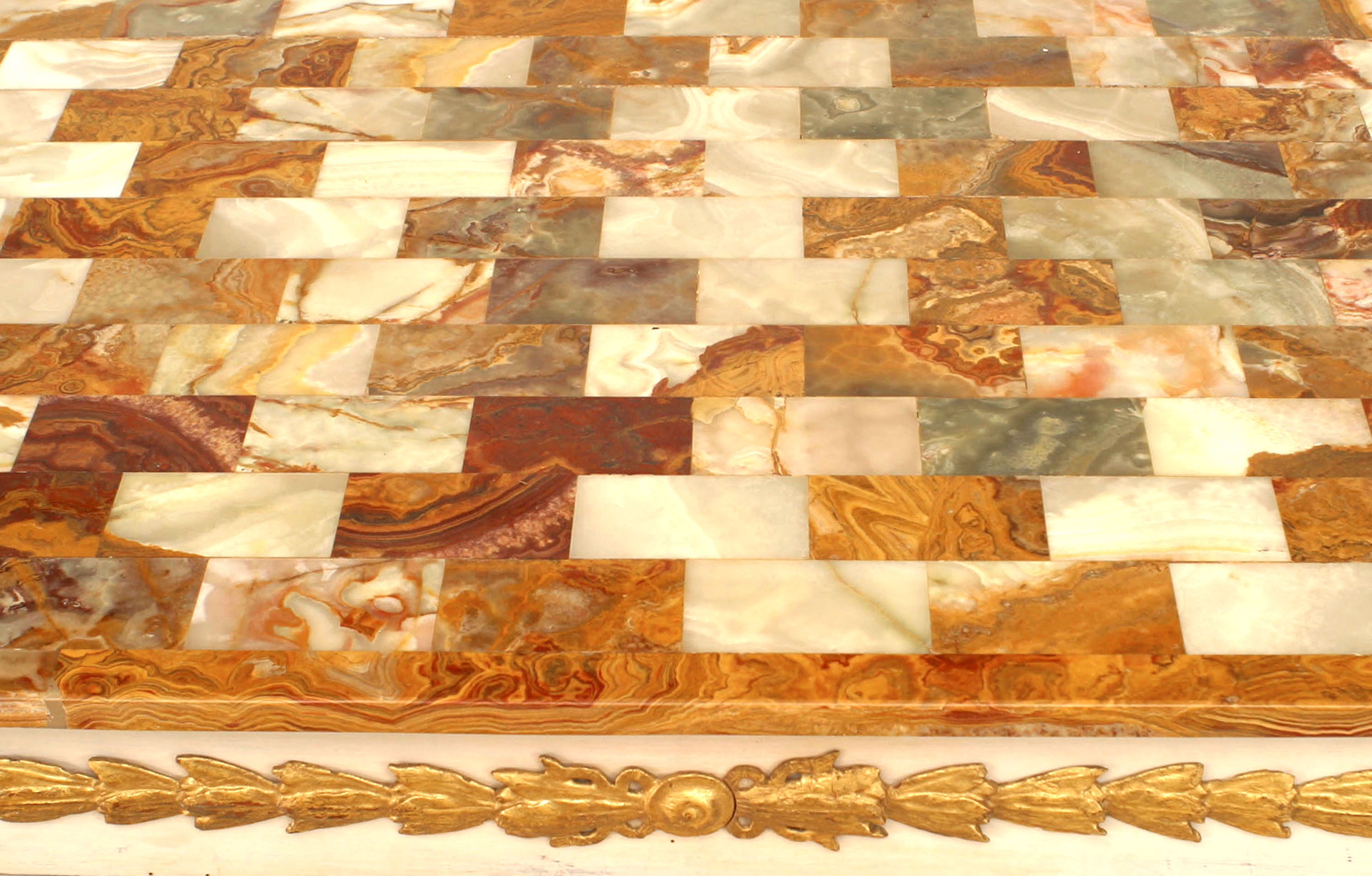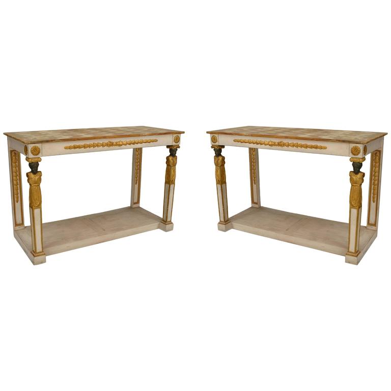 Pair of Italian Neo-Classic Painted Onyx Top Console Tables