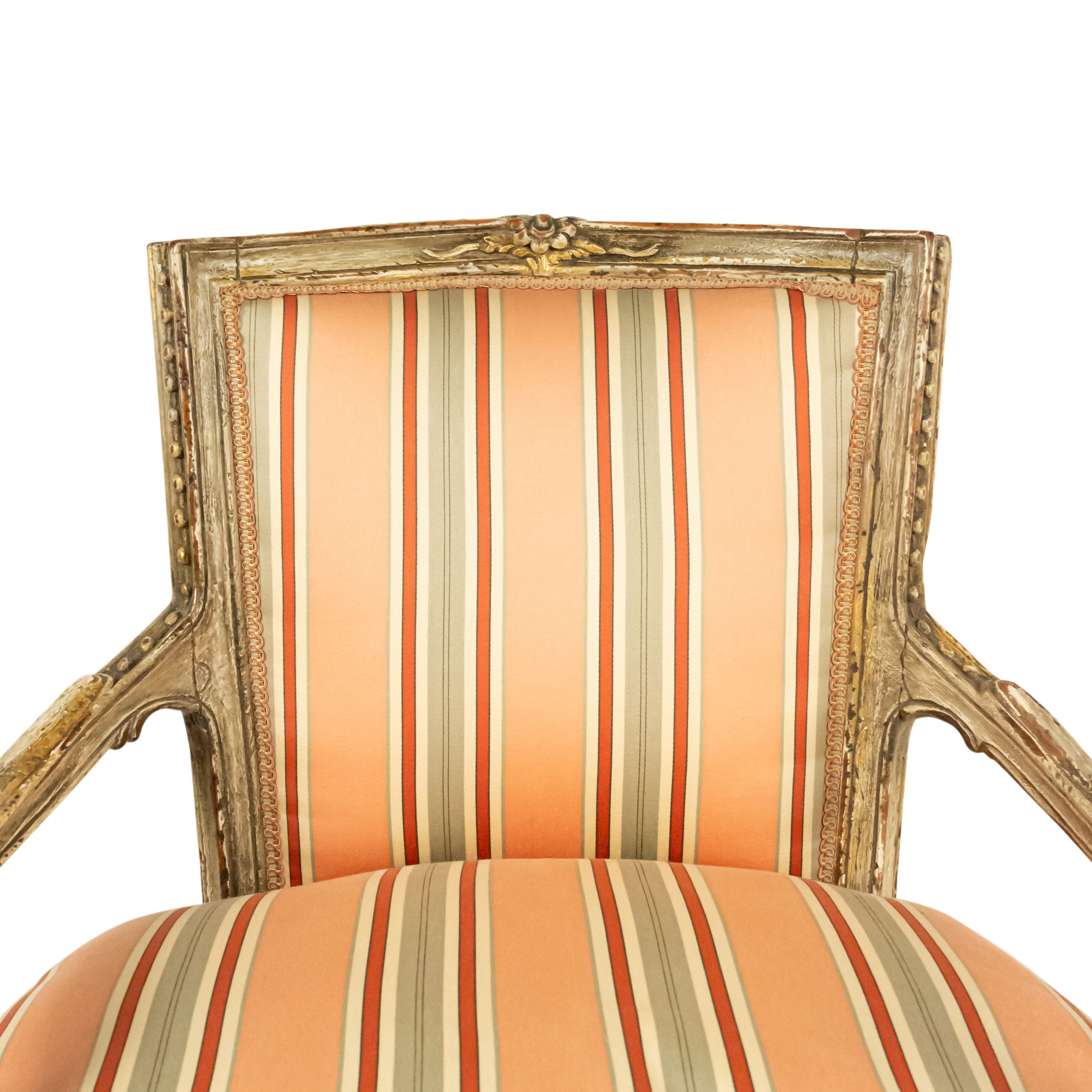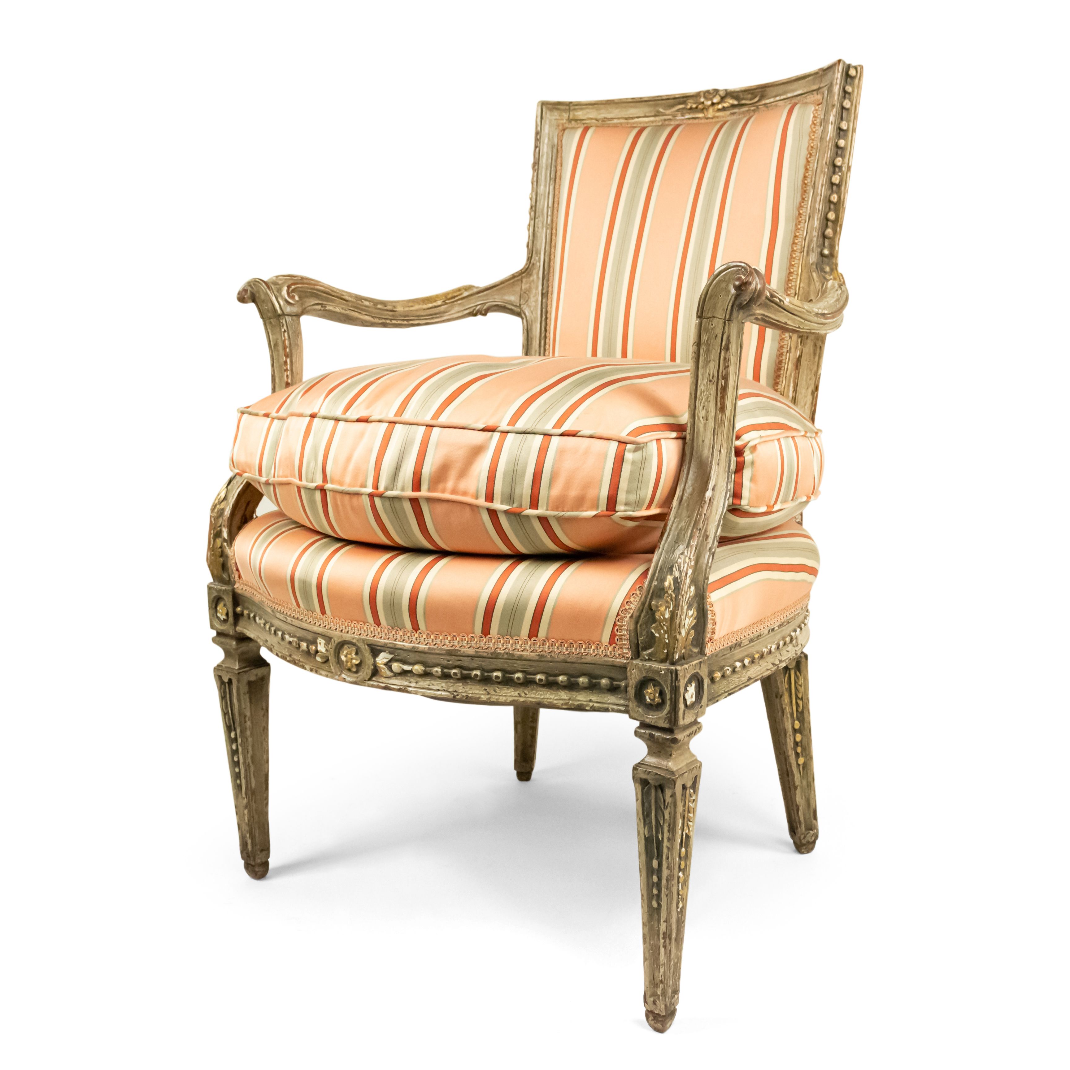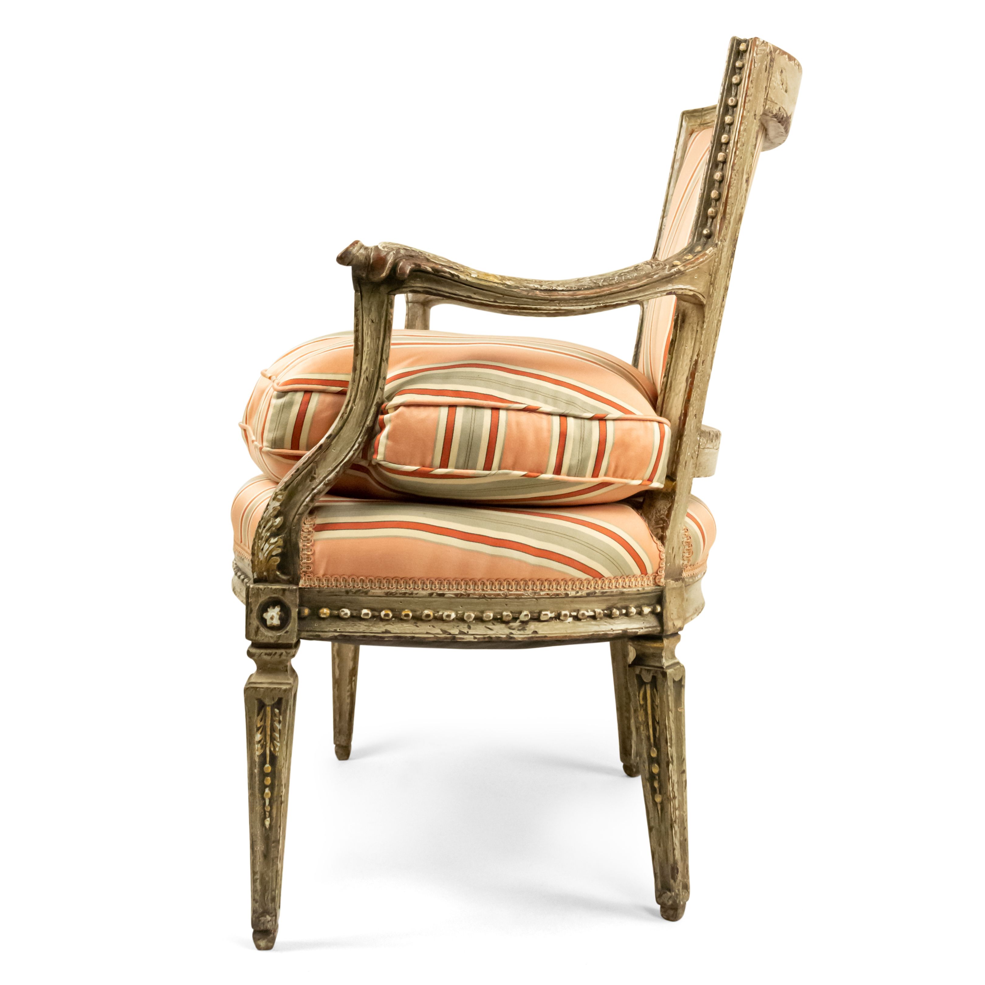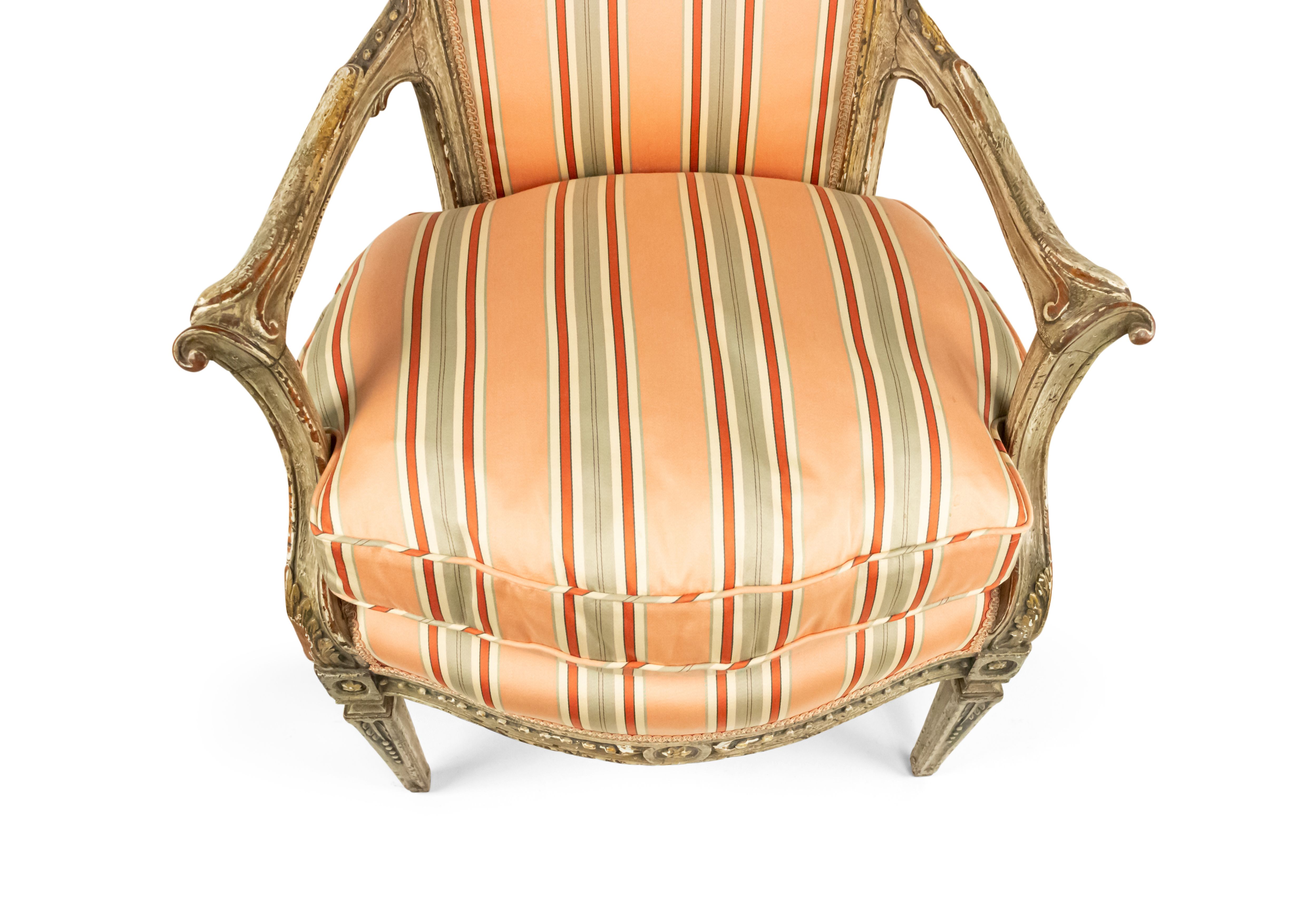 Italian Neo-Classic Pink Stripe Arm Chair