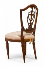 Italian Neo-Classic Shield Back Dining / Side Chair with Floral Patterned Beige Upholstery