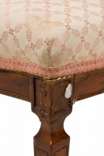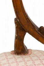 Style: Italian Materials & Techniques: Embroidered, embroidery, fabric, incised, upholstered, wood Category: Seating Condition: Loss and breakage to chair back. Wear to finish from age & use. Good; Minor losses