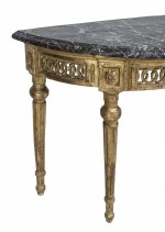 Style: Italian Materials & Techniques: Gilt / giltwood, marble Category: Dining Room Condition: Antique condition. Marble top has crack that has been repaired.