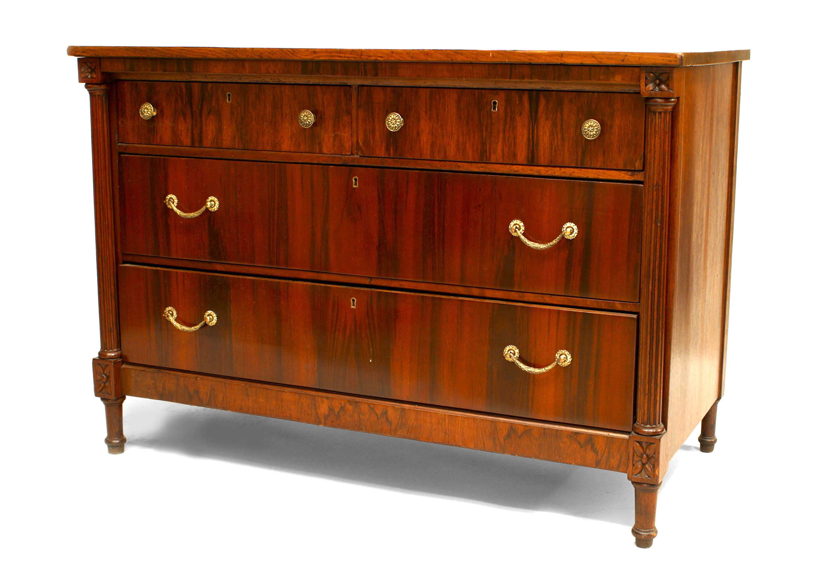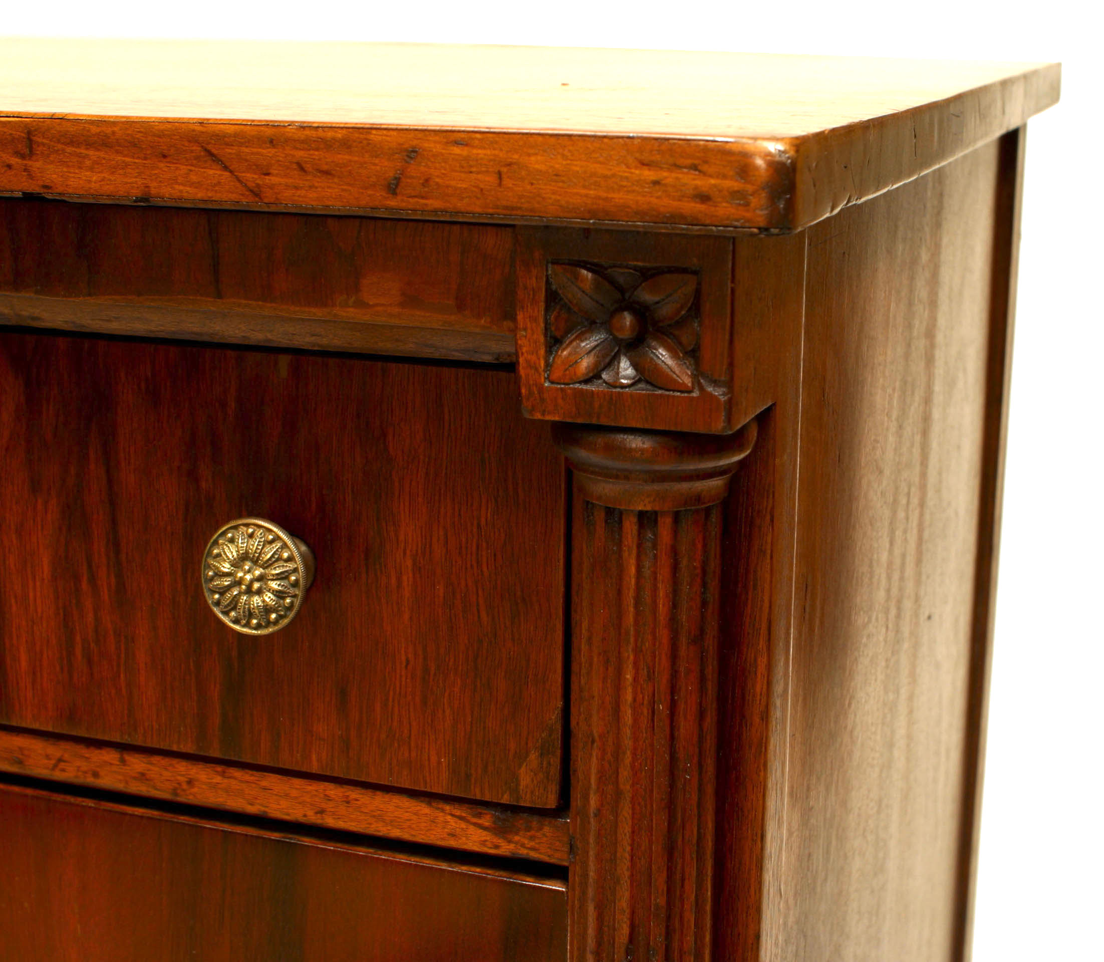 Italian Neo-classic (19th Century) walnut chest with 4 drawers and fluted column sides.