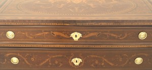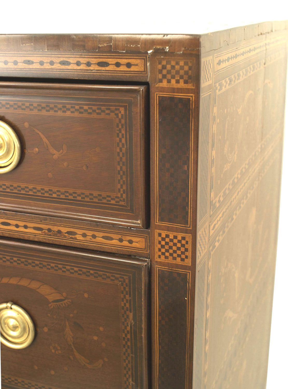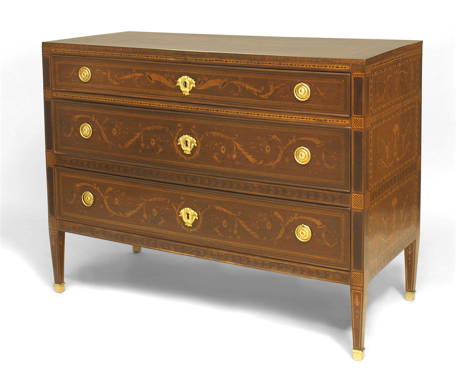 PAIR of Northern Italian (late 18th Century) Neo-classical walnut and marquetry inlaid gilt bronze mounted commodes with 3 drawers (in the manner of GIUSEPPE MAGGIOLINI) (PRICED AS PAIR)..
