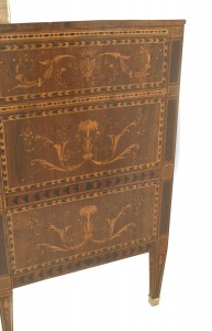 Giuseppe Maggiolini (1738-1814) was an Italian furniture designer and decorative arts artist known for his exquisite craftsmanship and intricate designs. He was born in Milan, Italy, and showed an early interest in woodworking and design. Maggiolini trained under the renowned furniture maker, Giuseppe Maria Bonzanigo, where he honed his skills in woodworking and gained a deep understanding of the Rococo and Neoclassical styles. Inspired by the works of influential designers such as Thomas Chippendale and Jean-Henri Riesener, Maggiolini developed his unique style that combined the elegance of the Rococo with the simplicity and geometric forms of the Neoclassical period. Throughout his career, Maggiolini gained recognition for his attention to detail and meticulous craftsmanship. He was known for incorporating intricate marquetry, delicate inlays, and ornate carvings into his furniture pieces. His designs often featured floral motifs, classical figures, and architectural elements, showcasing his mastery of both form and function. Maggiolini's work was highly sought after by the European nobility and aristocracy. He received numerous commissions from prominent figures, including Empress Maria Theresa of Austria and King Louis XVI of France. His furniture pieces adorned the palaces and residences of the elite, adding a touch of luxury and sophistication to their interiors. In addition to furniture, Maggiolini also excelled in other decorative arts, such as creating stunning marquetry panels, gilded mirrors, and intricate clock cases. His ability to seamlessly blend different materials and techniques made him a versatile artist in the world of decorative arts. Despite his success, Maggiolini faced challenges during the turbulent times of the French Revolution and the subsequent Napoleonic Wars. The political instability in Europe affected the demand for luxury furniture, leading to a decline in his commissions. However, Maggiolini adapted to the changing times by creating smaller, more affordable pieces that appealed to a wider market. Giuseppe Maggiolini's legacy lives on through his exquisite craftsmanship and innovative designs. His furniture pieces can be found in prestigious museums and private collections worldwide, showcasing his significant contribution to the field of furniture and decorative arts. His ability to blend different styles and techniques continues to inspire contemporary designers and artists in their pursuit of creating timeless and elegant pieces.