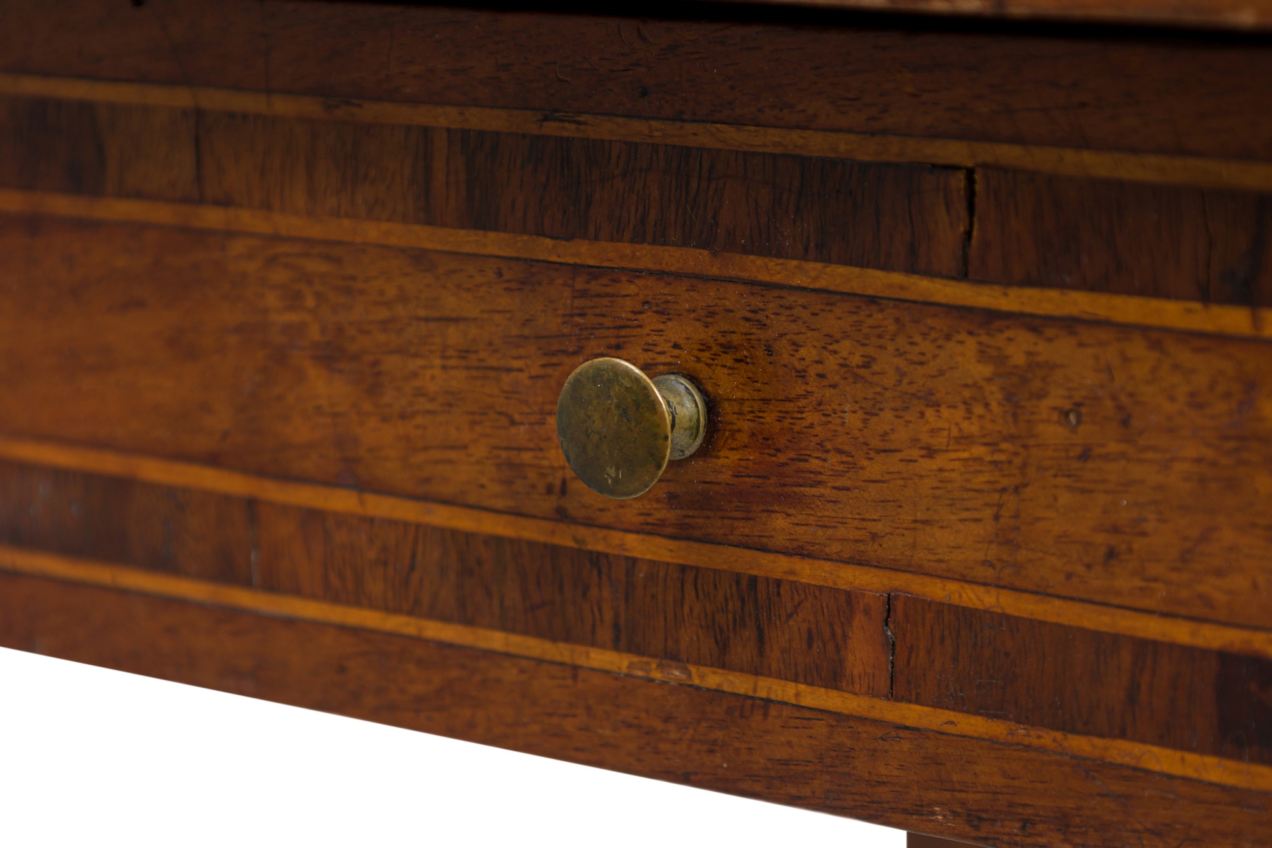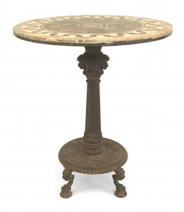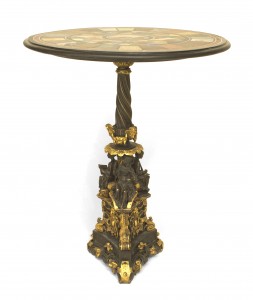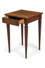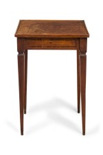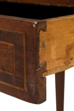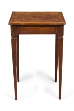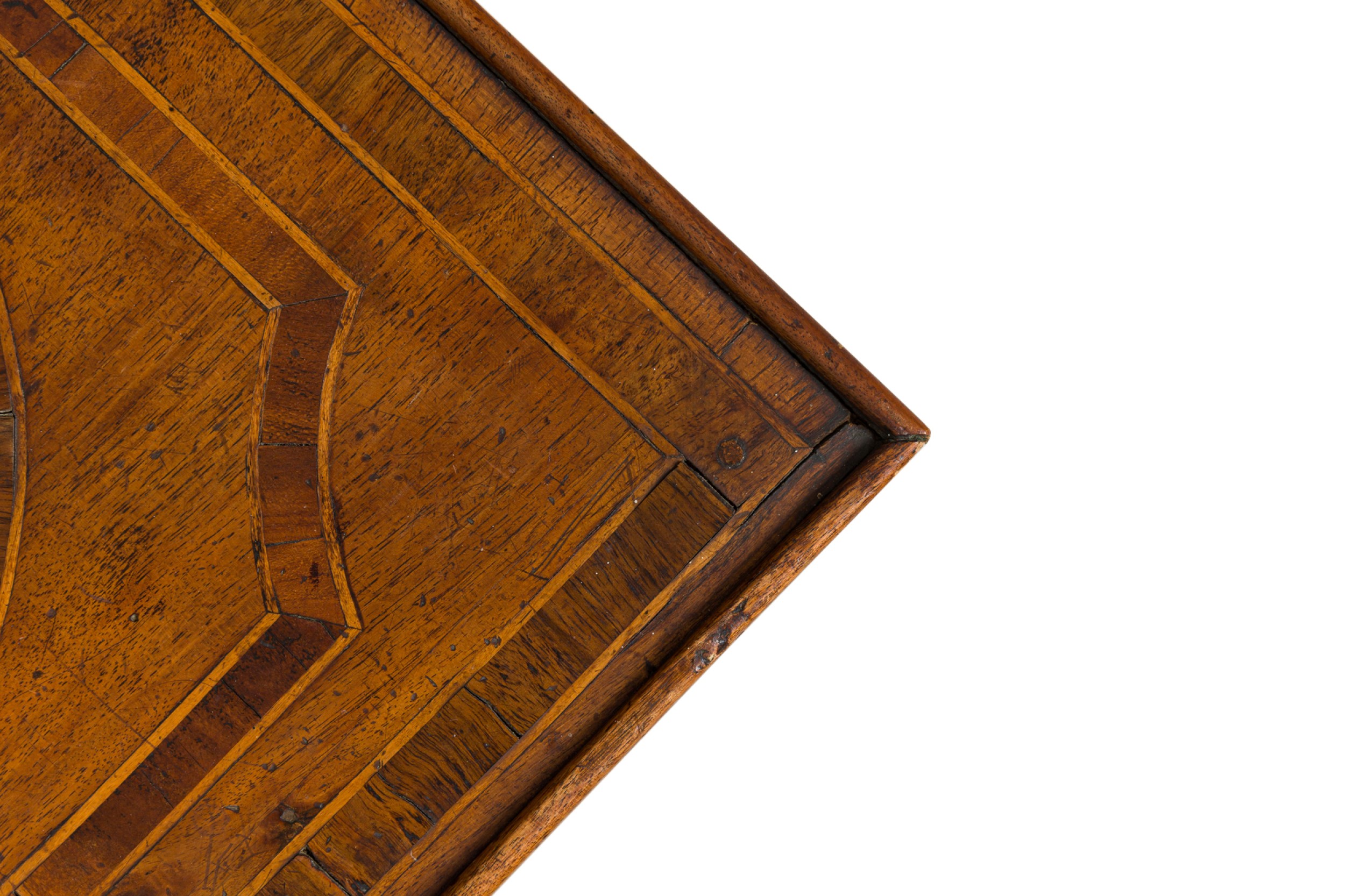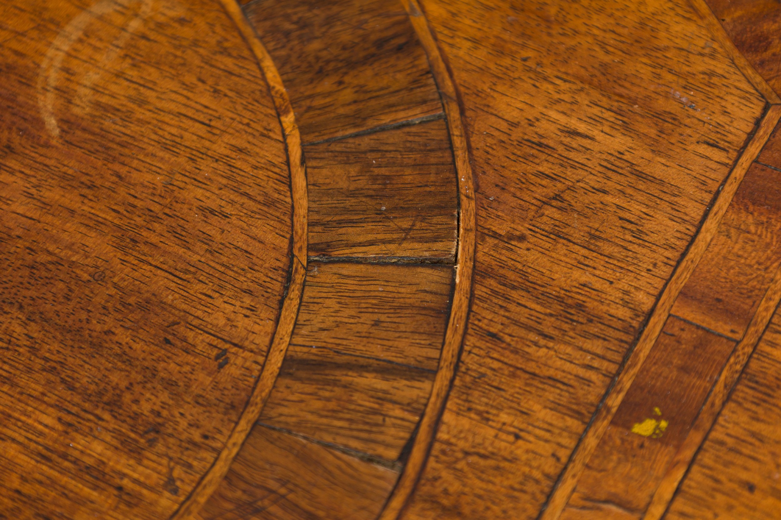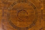 Style: Italian Materials & Techniques: Inlaid, inlay, veneer, walnut, wood Category: Tables Condition: Buckling and separation to inlaid veneer throughout. Good; Minor losses