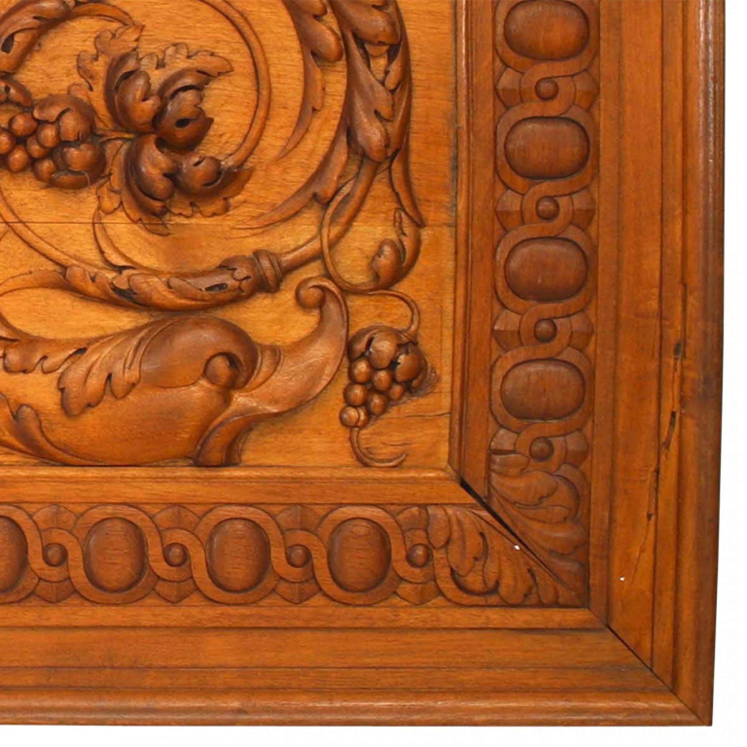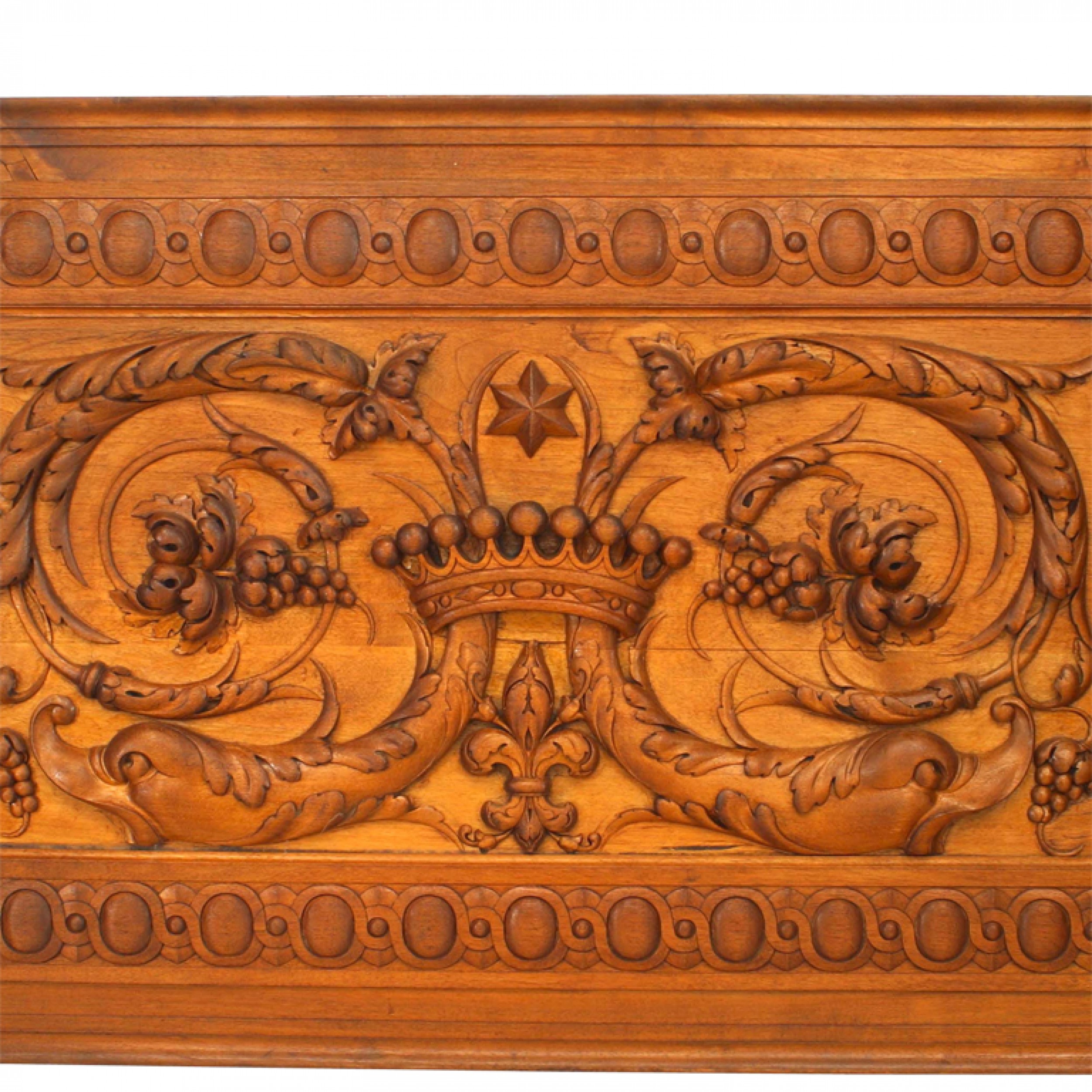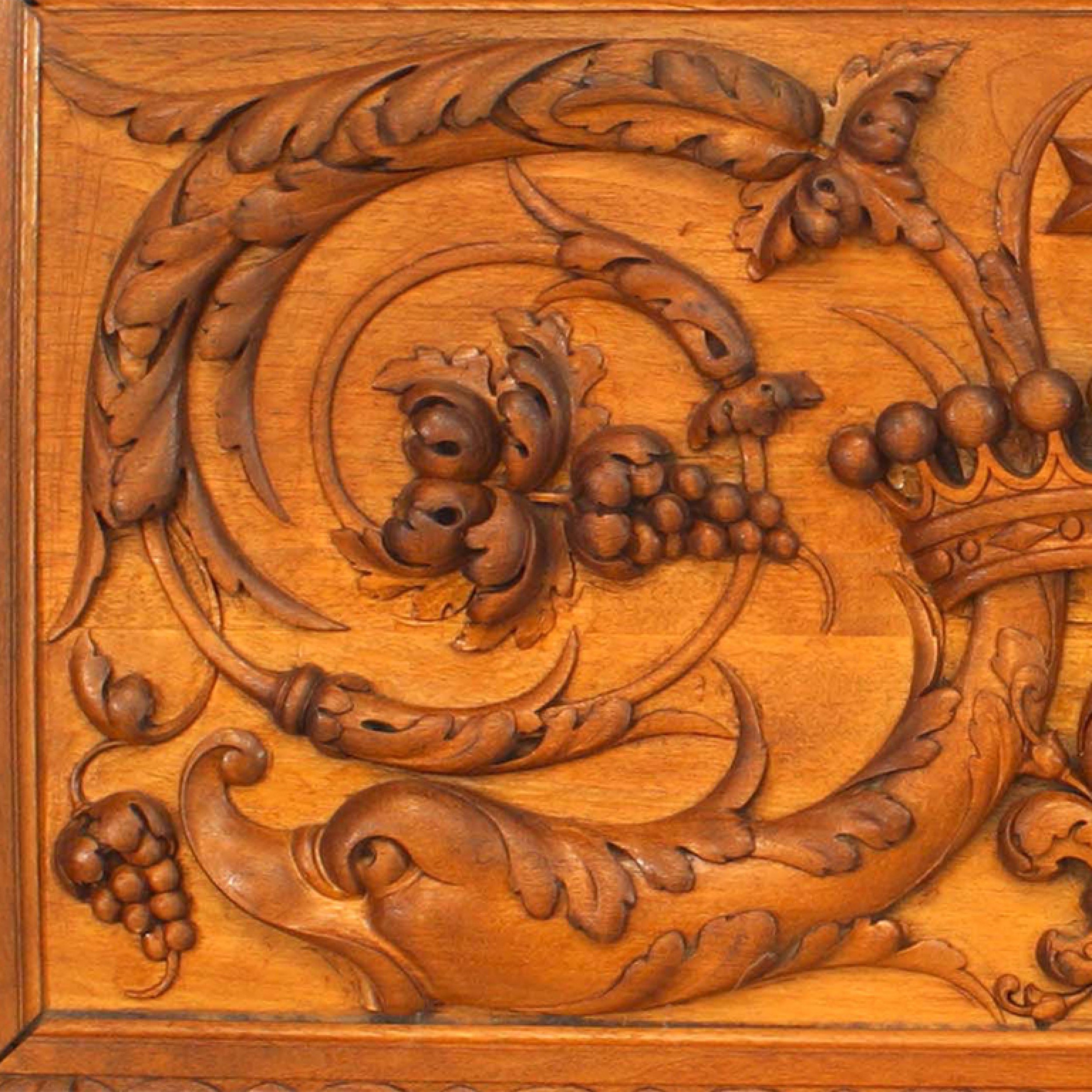Italian Neo-classic style (19th Century) carved walnut panel with relief carvings of dolphins and fruit with a scroll design and center crown..