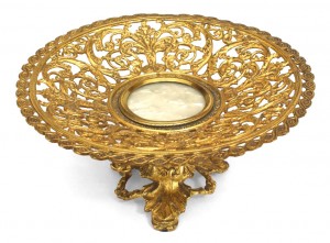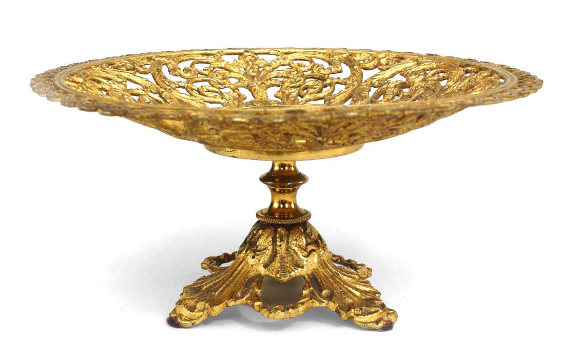 Italian Neo-classic (19th Century) bronze dore filigree pedestal base compote with pearl veneer round center center..