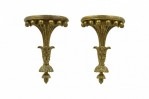 PAIR of Italian Neoclassic-style carved giltwood wall shelves with bundle of wheat design and carved balls below the semi-circular shelf surfaces. (PRICED AS PAIR).