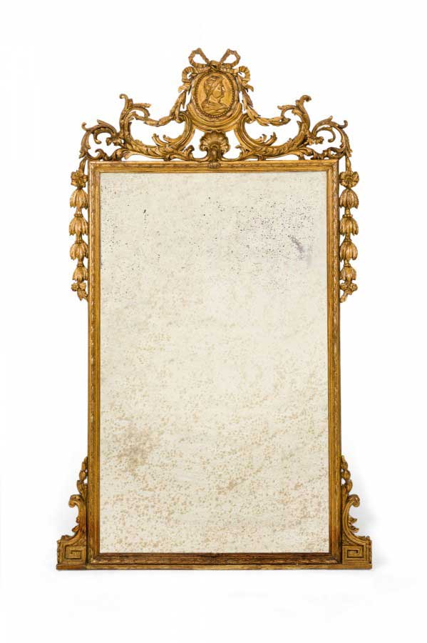 Style: Italian Materials & Techniques: Carved, gilt / giltwood, glass, pediment Category: Mirrors