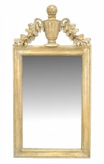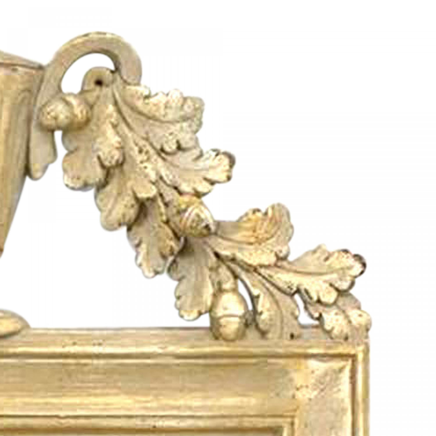 Italian Neoclassic style (20th Cent) grey painted small mirror with urn top and wreath with acorns and flowers..