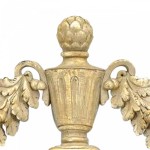 Italian Neoclassic style (20th Cent) grey painted small mirror with urn top and wreath with acorns and flowers.