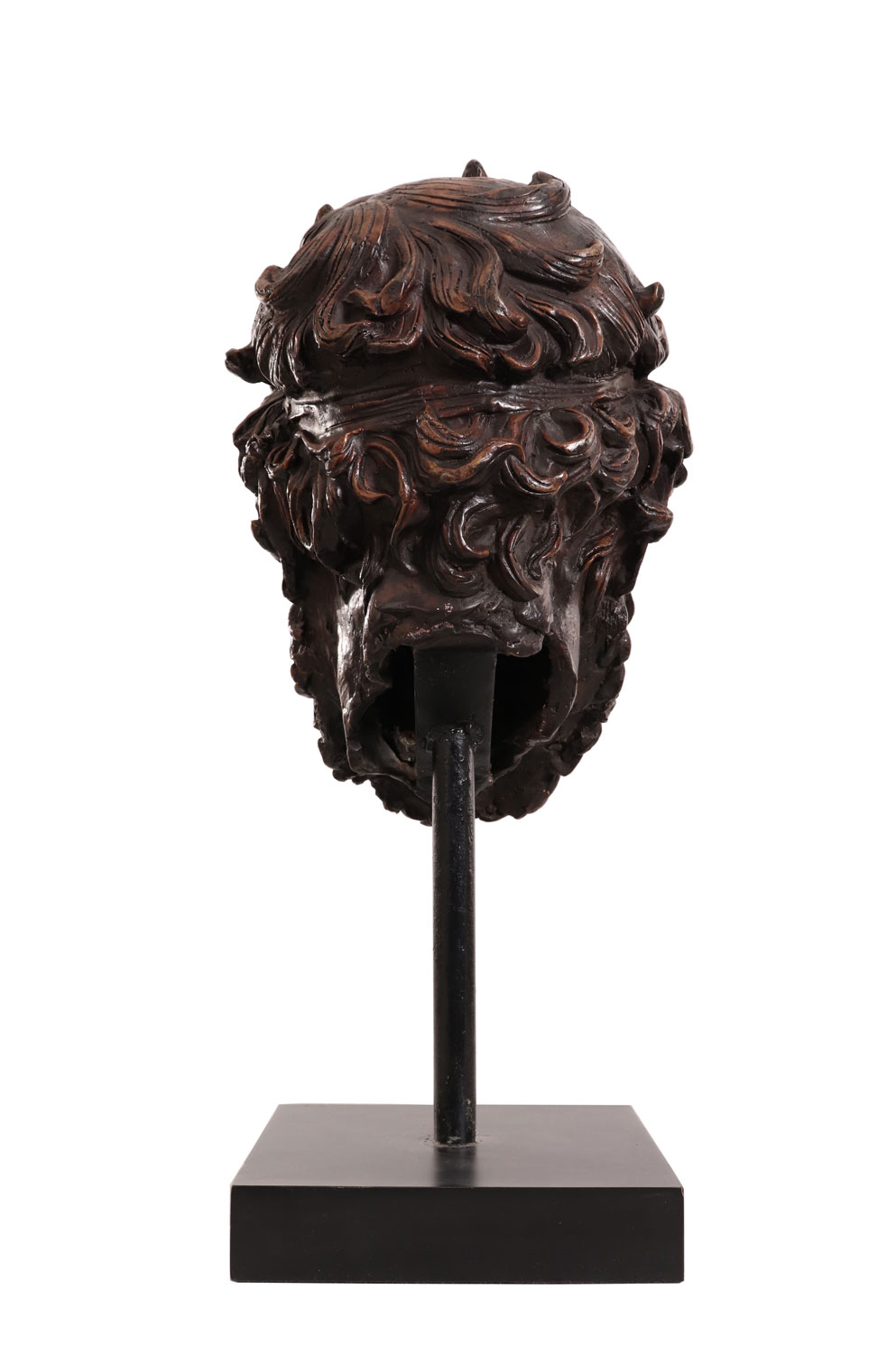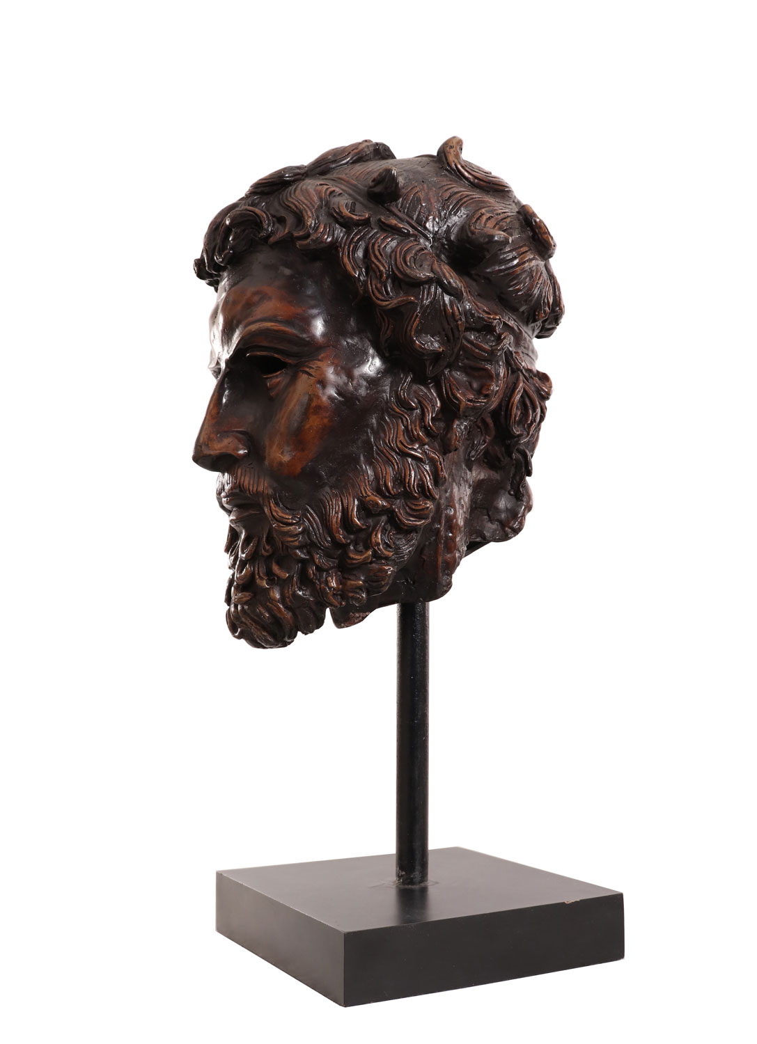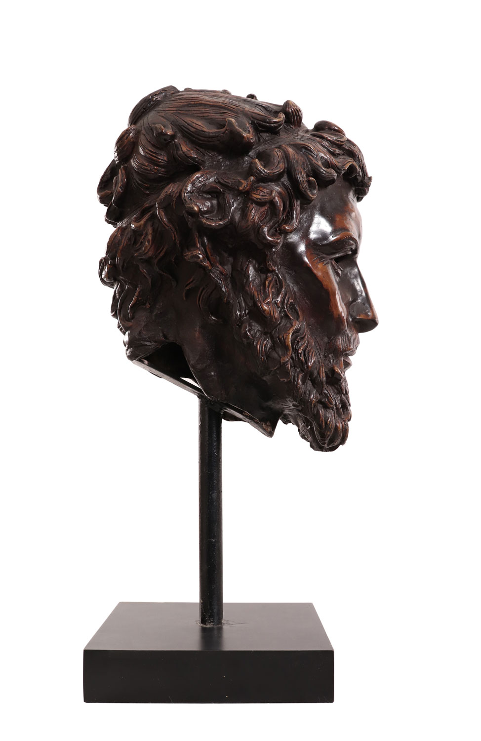 Italian Neo-classic style cast bronze bust of Poseidon supported on a square black metal stand (19th Cent)