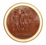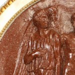 Italian Neo-classic style plaster wall plaque with painted faux porphyry scene of 3 figures within a white and gilt frame..