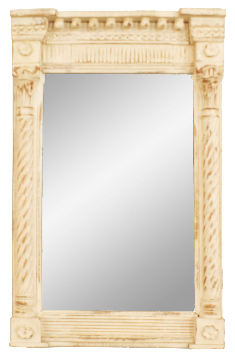 Italian Neoclassic-style (20th Century) white and gold trim wall mirror with column sides..