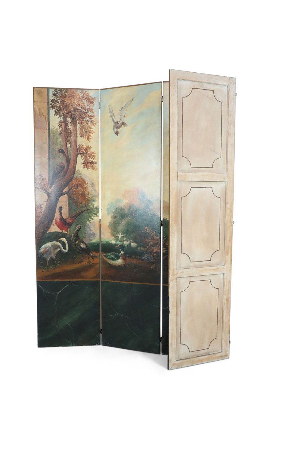 Italian Neoclassical Bird and Garden Vignette Folding Screen