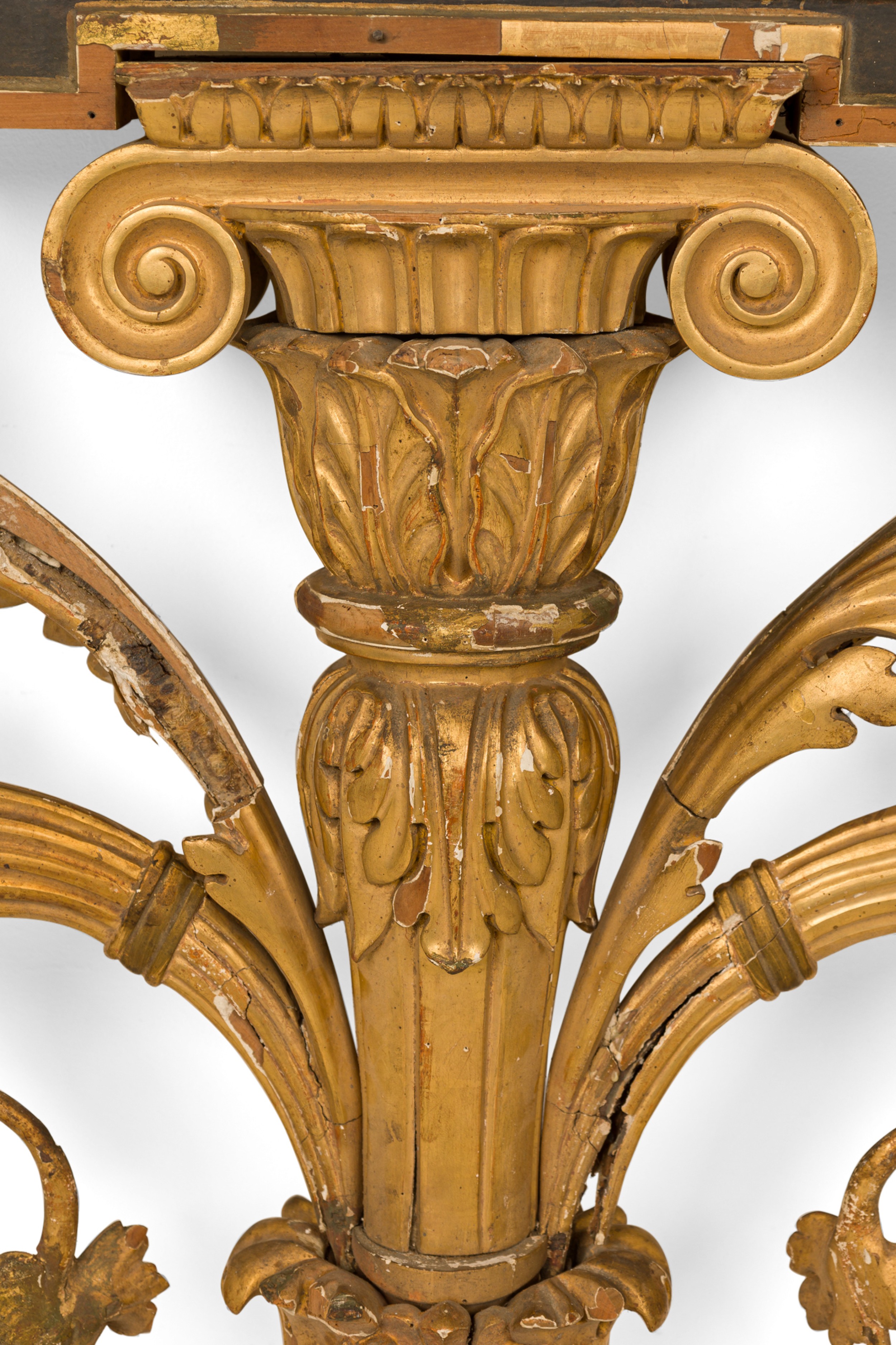 Italian Neoclassic (18th Century) gilt carved wood and metal wall plaque with a centered column and capital with an eminating scroll and cornicopia design.