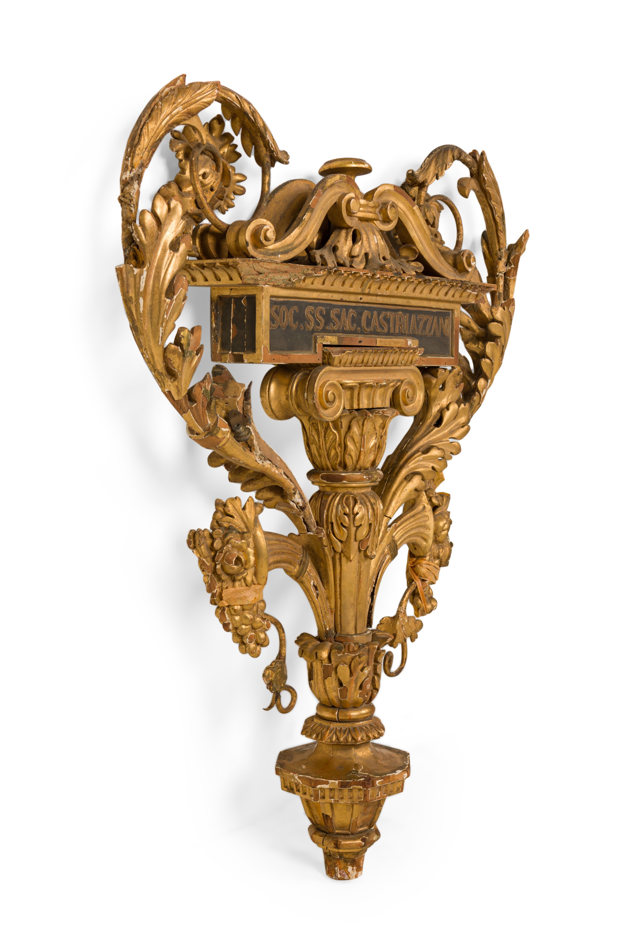 Style: Italian Materials & Techniques: Gilt / giltwood Category: Rugs/Textile, Accessories/Décor/Bric-a-Brac Condition: Fair Condition with minor structural damages and losses to gilding