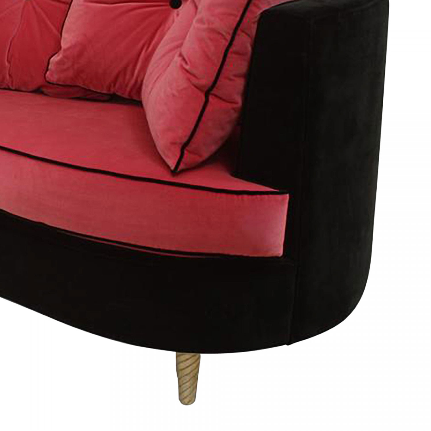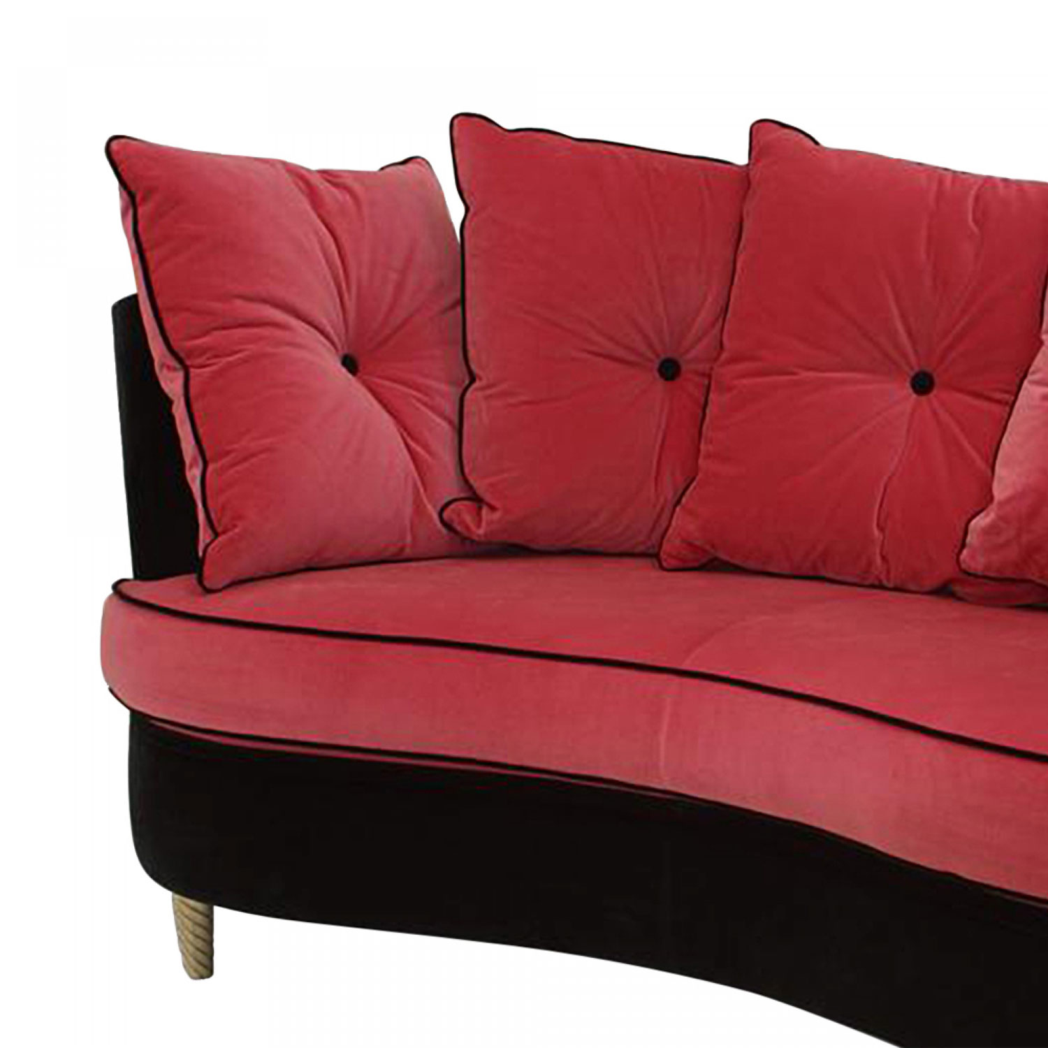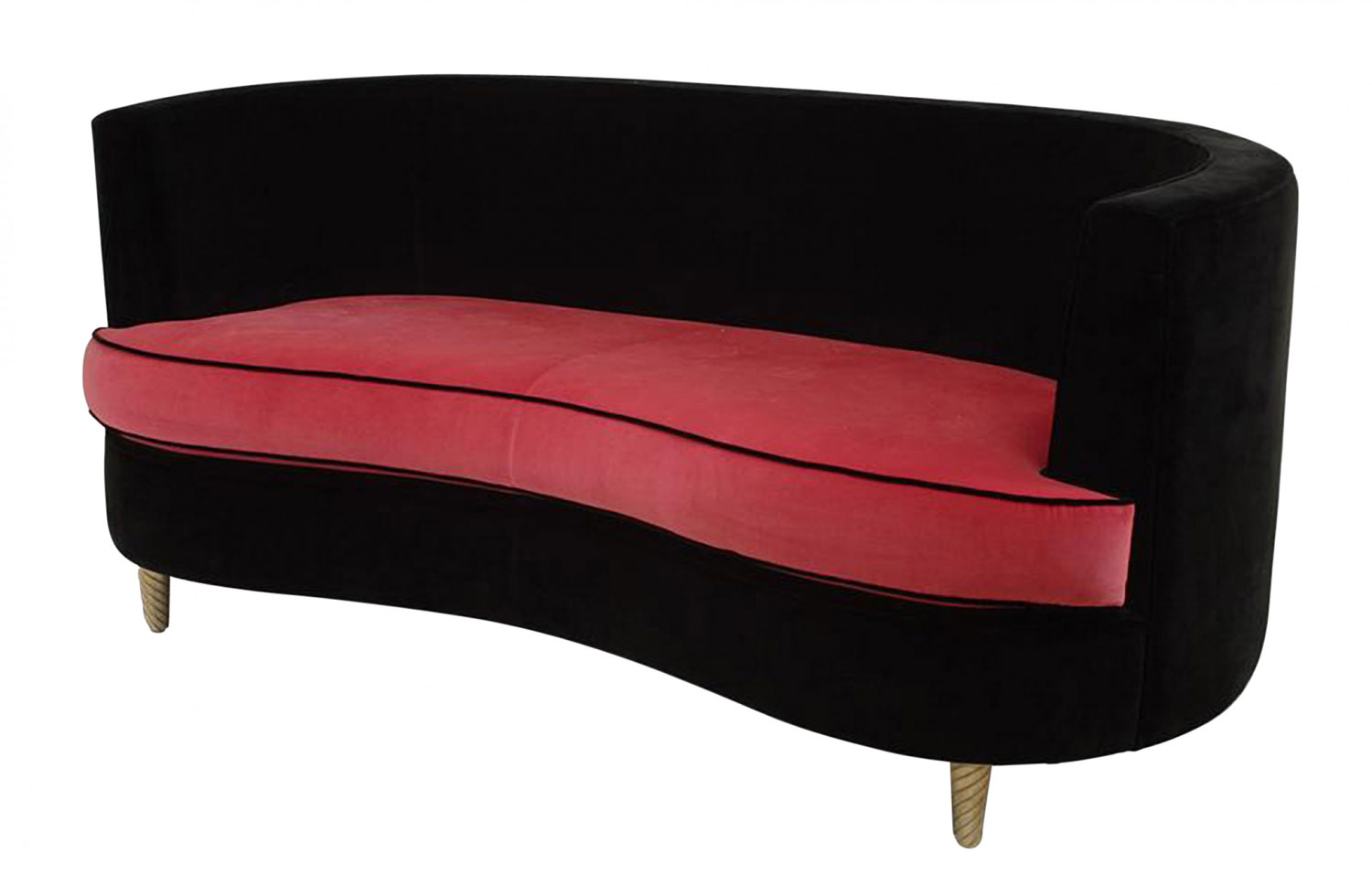 Italian Post-War Design 1960s style (modern) black velvet settee with rounded sides and shaped front with pink velvet seat & 4 back cushions contemporary, modern.