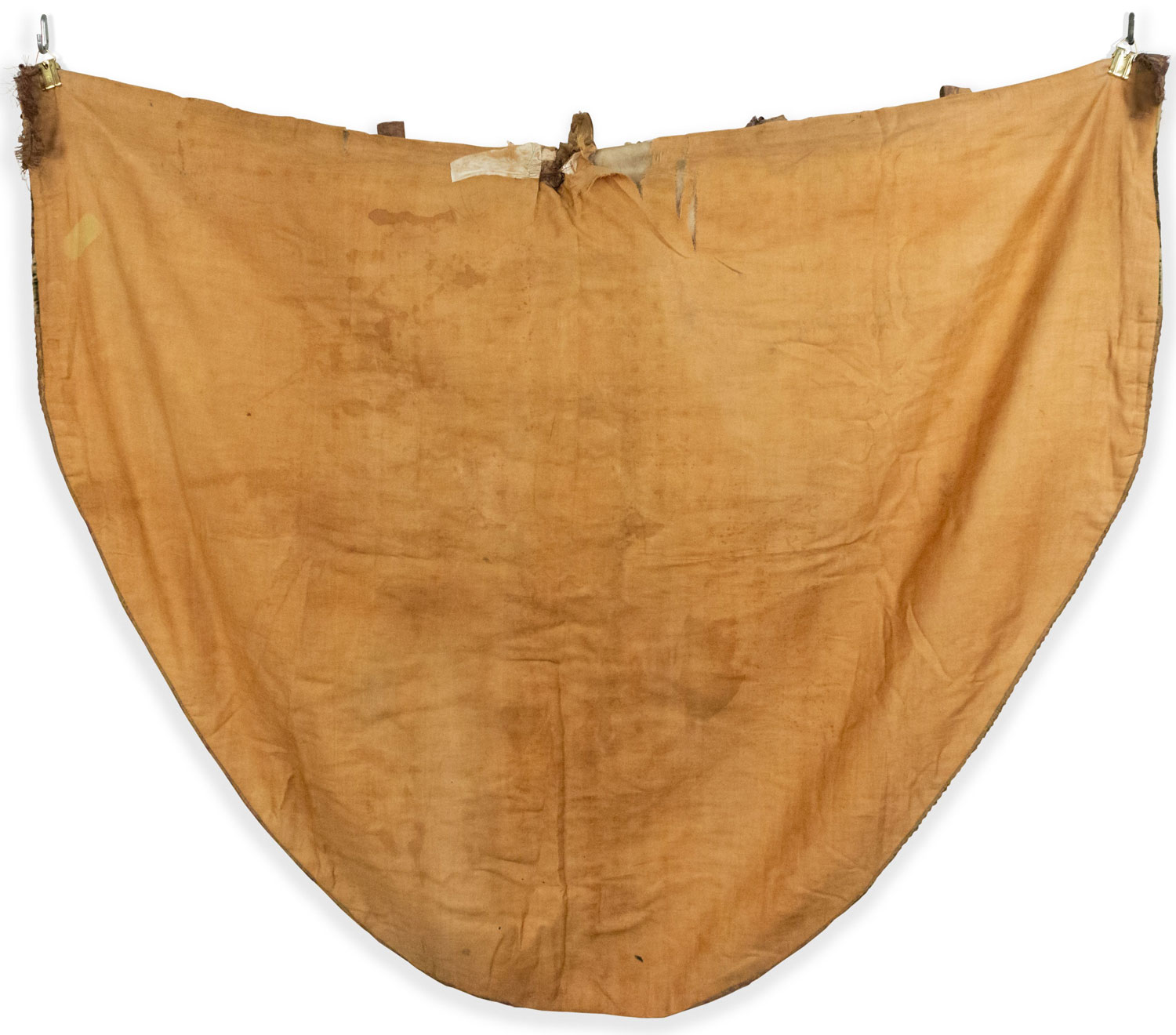 Italian Renaissance style (19th Century) beige and green shield shaped hanging banner with velvet trim.