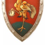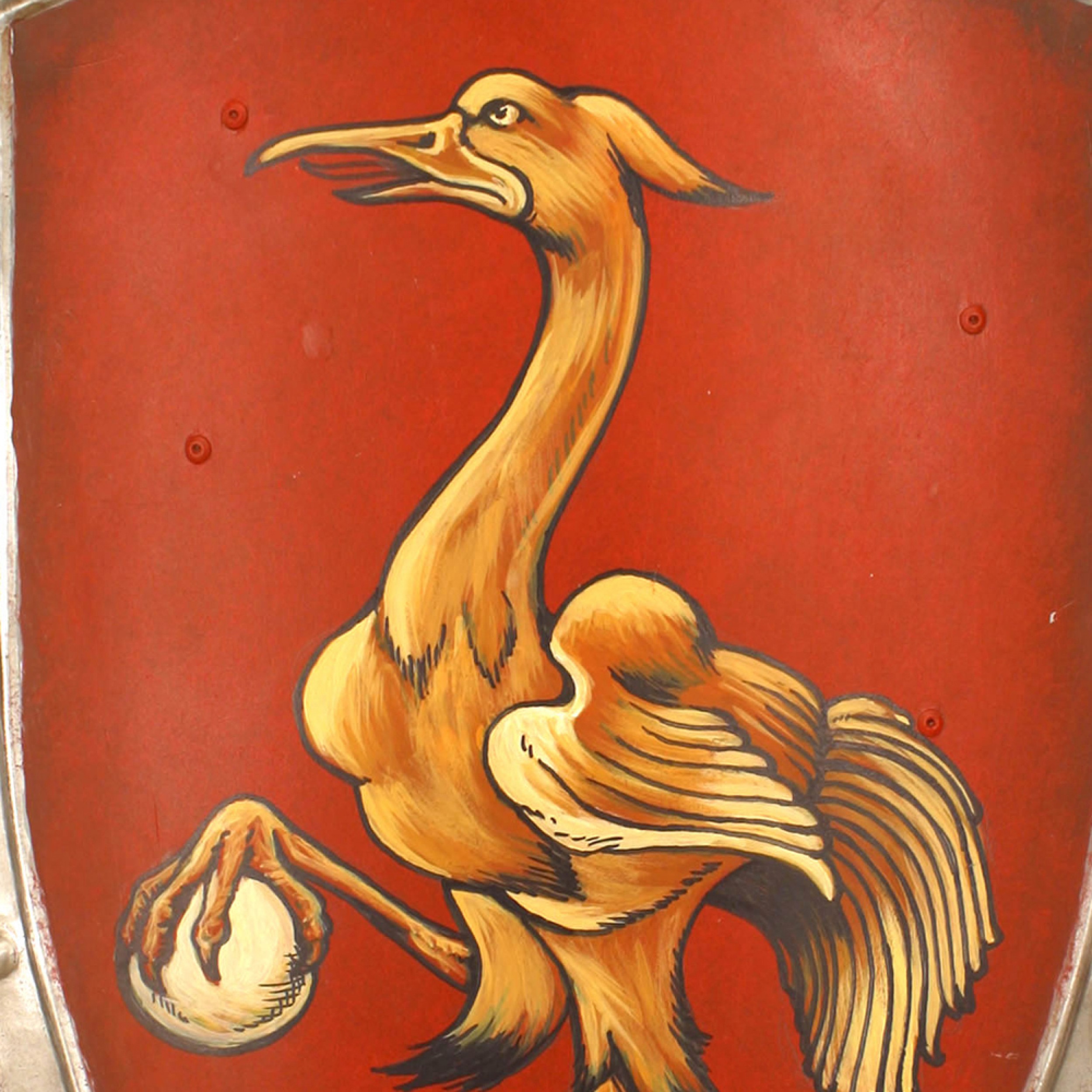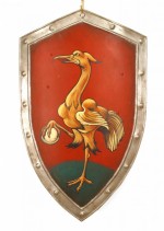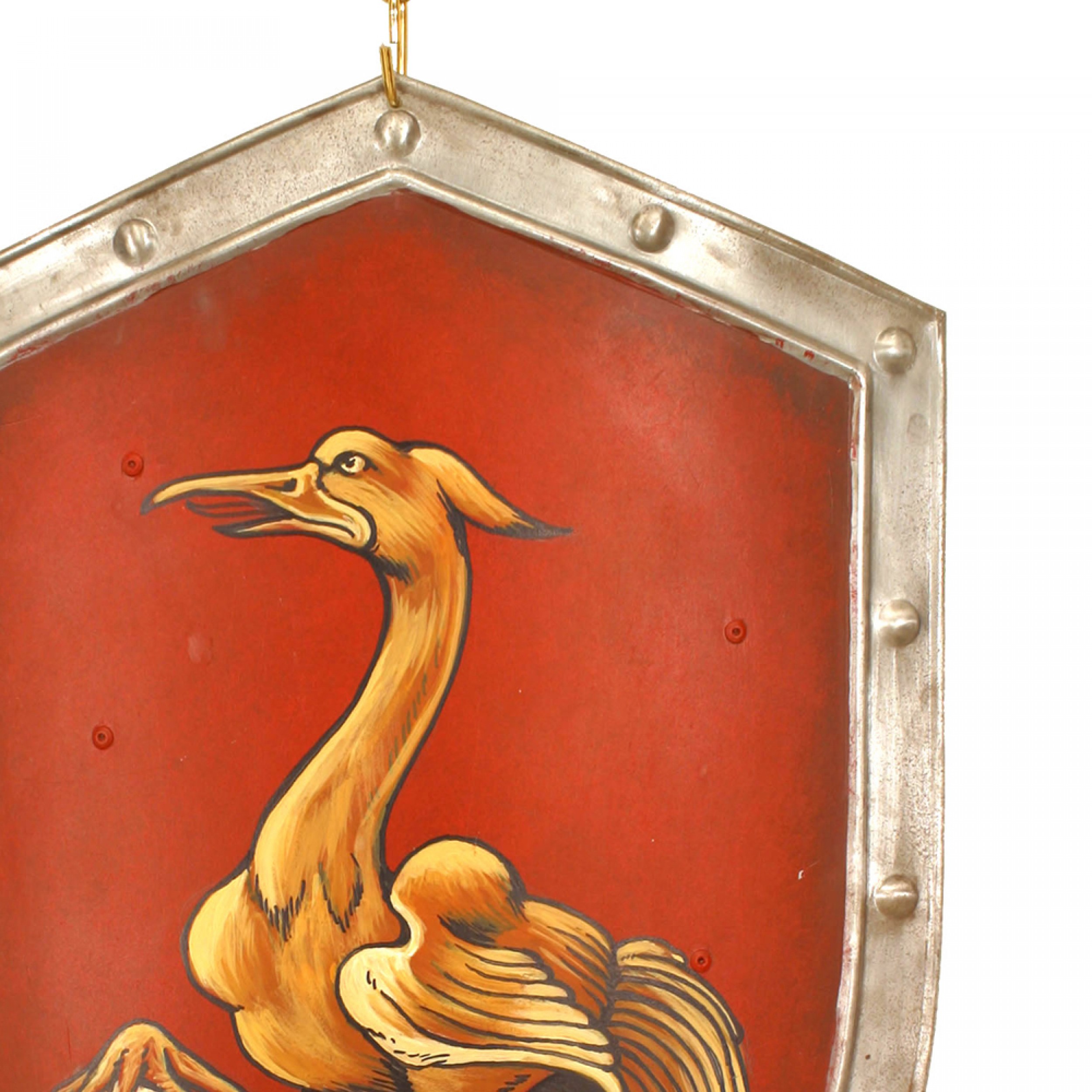 Italian Renaissance style (20th Century) shield form wall plaque with a bird and egg having a red background..