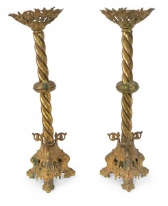 PAIR of Italian Renaissance-style (19th Century) brass swirl design altar sticks (PRICED PER PAIR)
