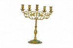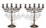 PAIR of Italian Renaissance-style (19th Century) bronze 5 arm candelabras with double lion and filigree design. (PRICED AS PAIR)