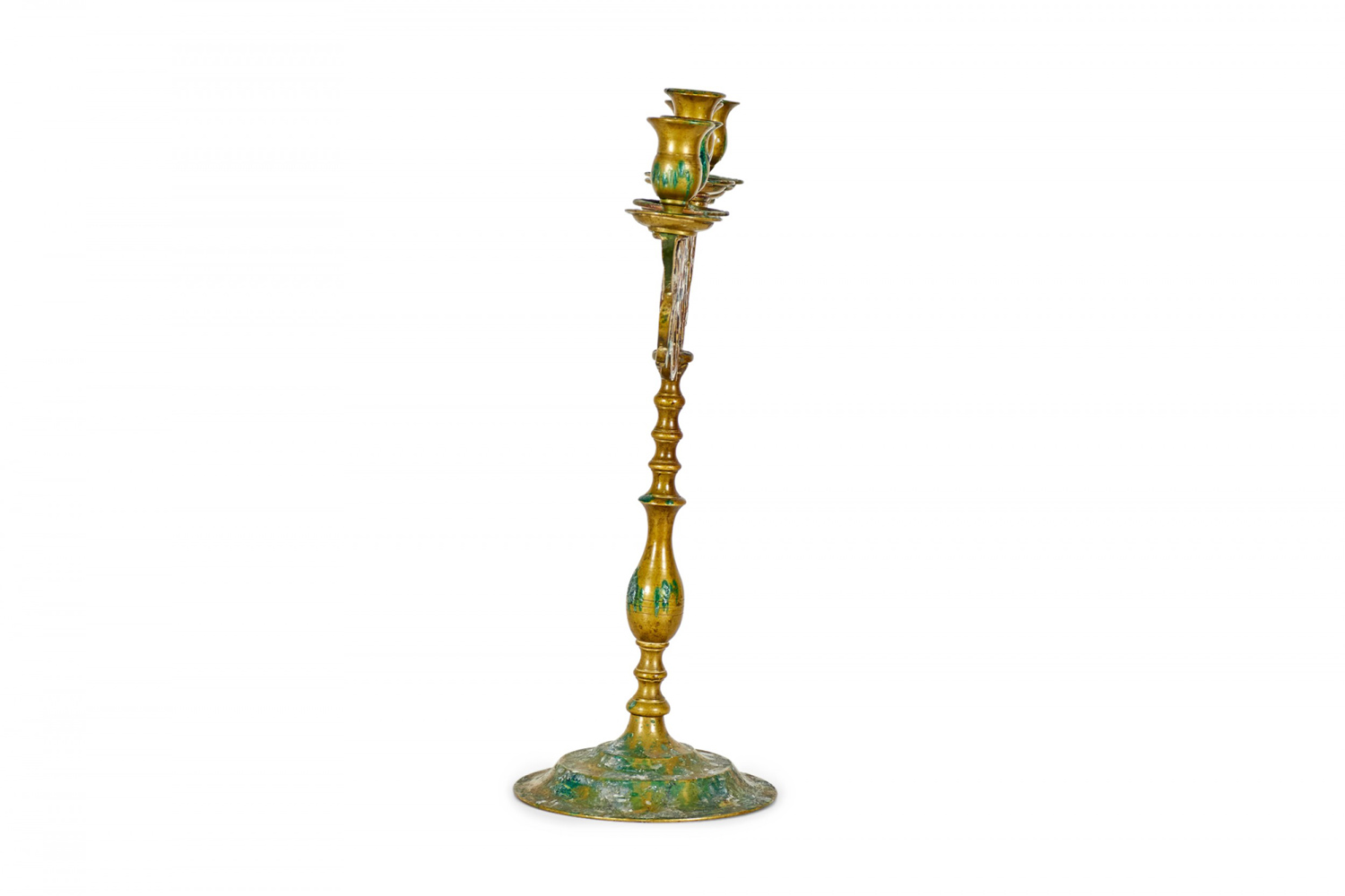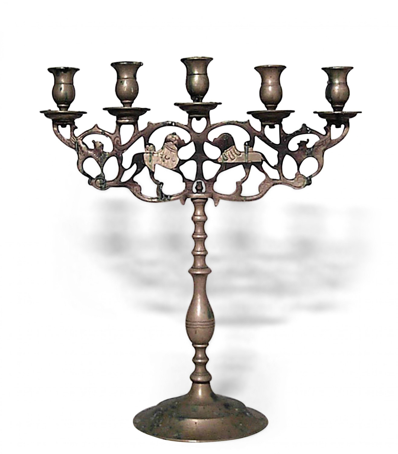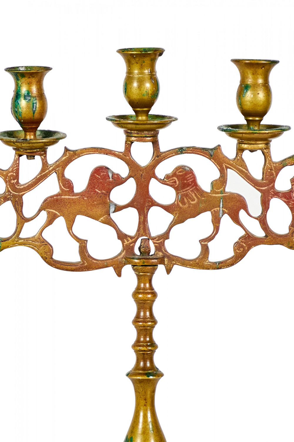PAIR of Italian Renaissance-style (19th Century) bronze 5 arm candelabras with double lion and filigree design. (PRICED AS PAIR).