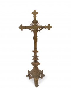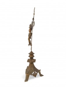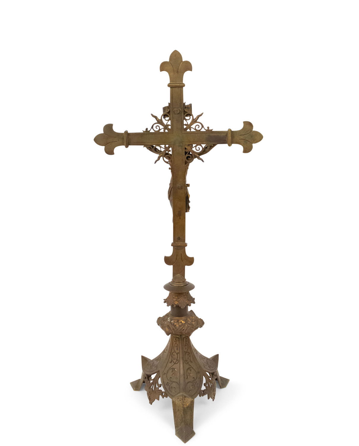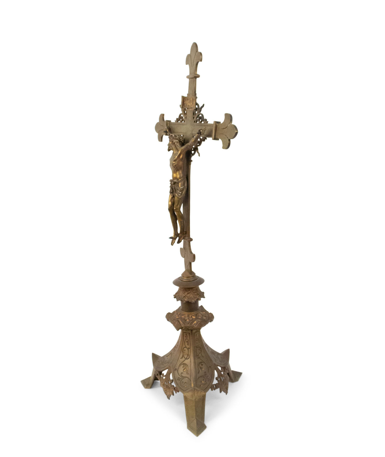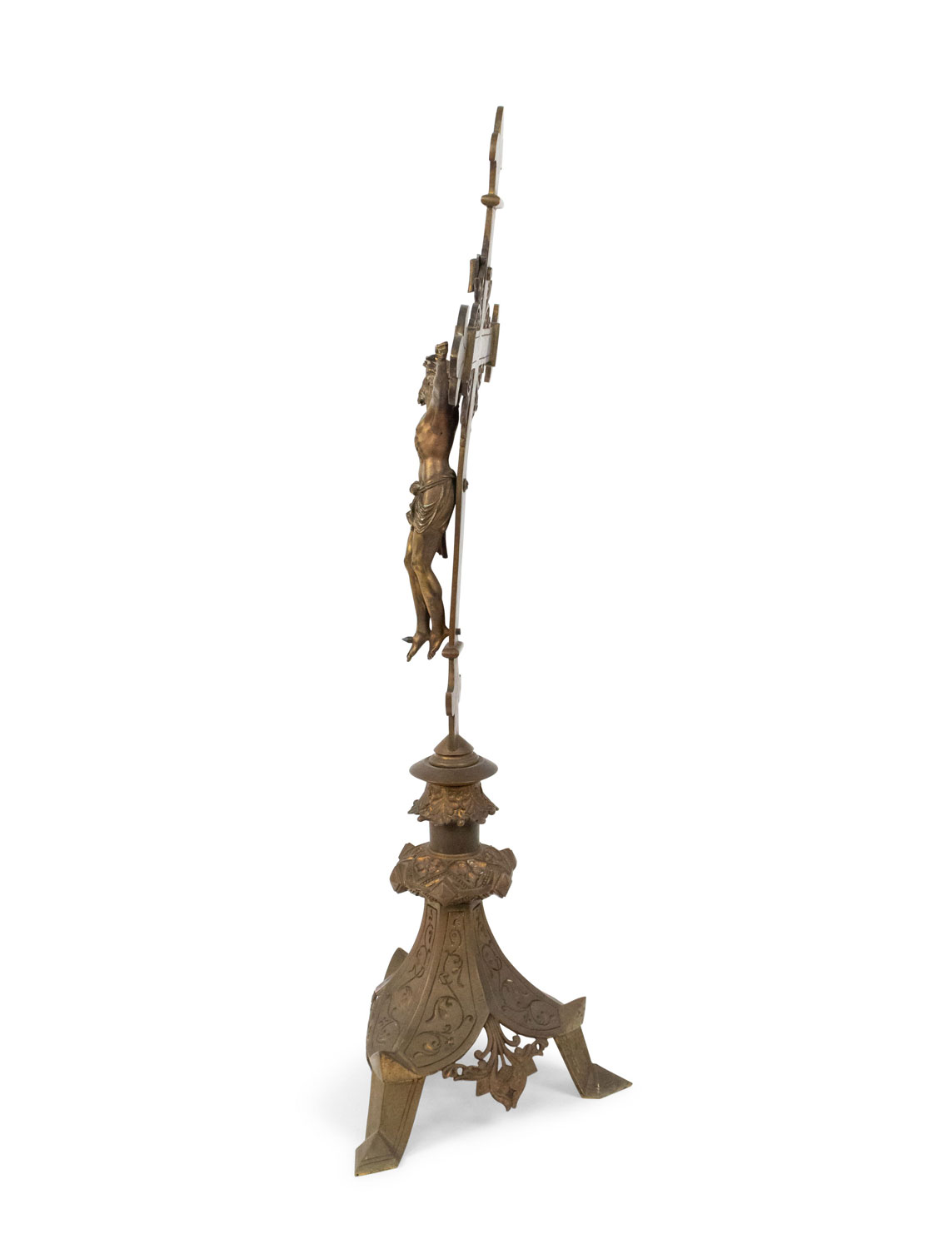 Italian Renaissance style bronze crucifix on tripod base and figure (19th Cent).
