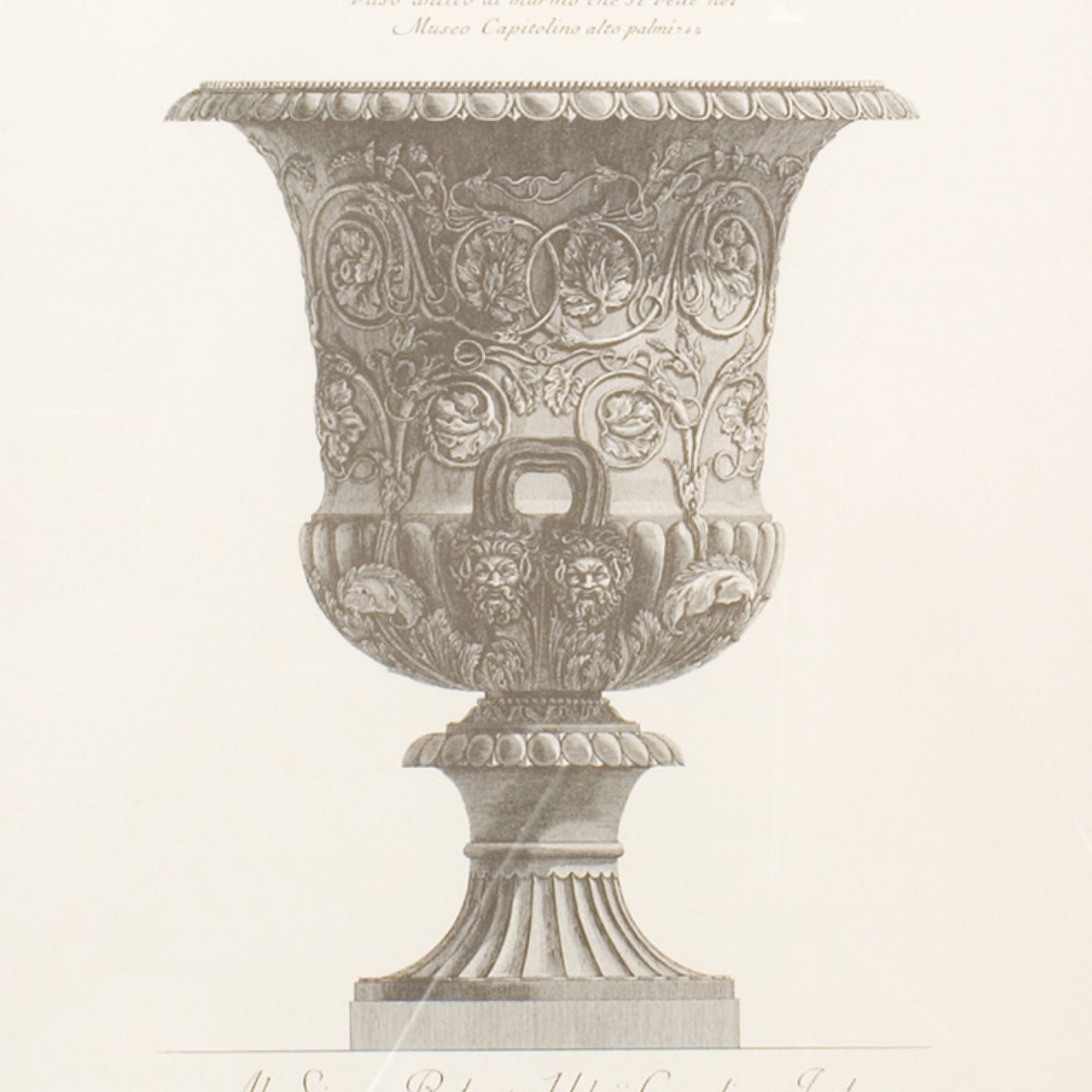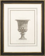 19th Cent print of a monumental Italian Renaissance classical urn in an ebonized and gilt frame.