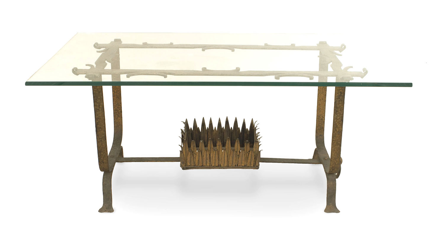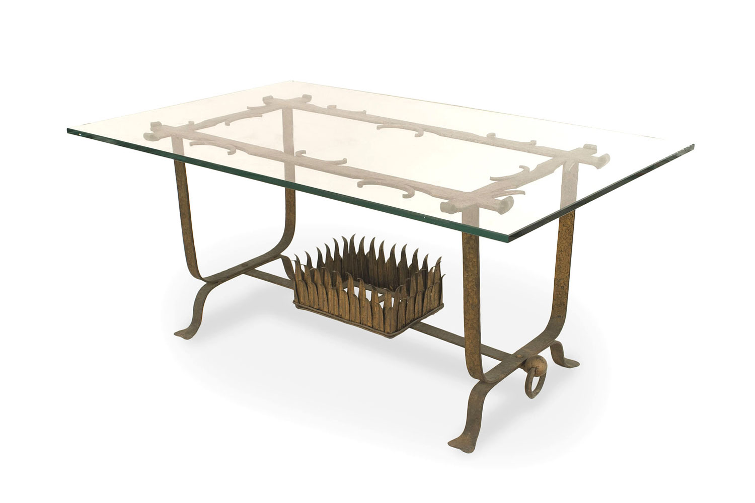 Italian Renaissance Style Gilt Iron and Glass Coffee Table