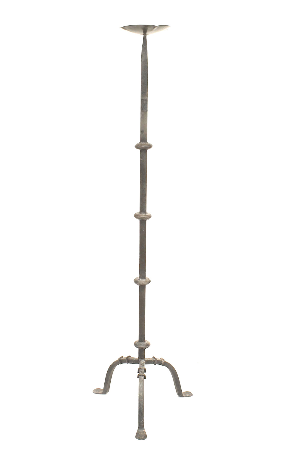 Italian Renaissance style wrought iron floor standing candle pricket on 3 legs..