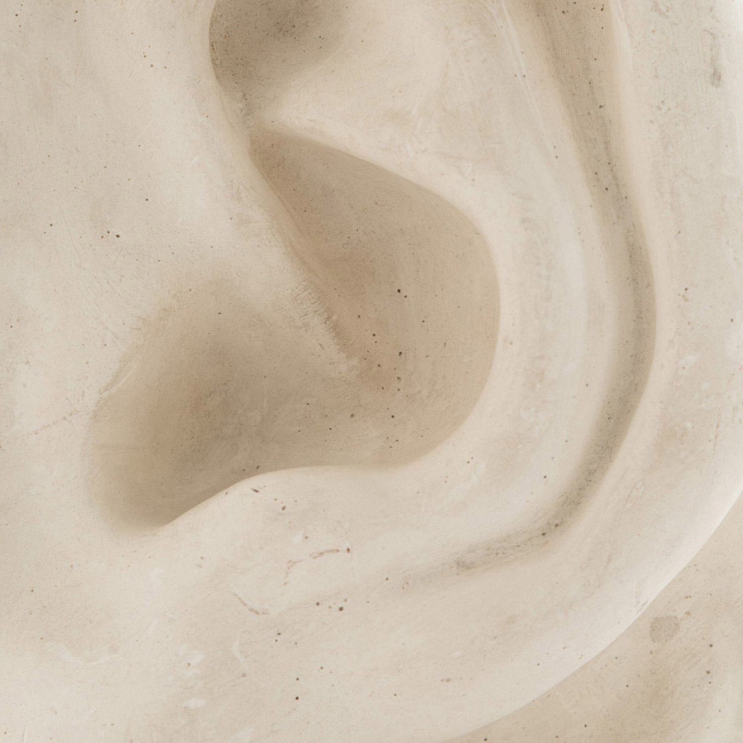 Italian Renaissance style plaster ear detail of Michelangelo's David statue.