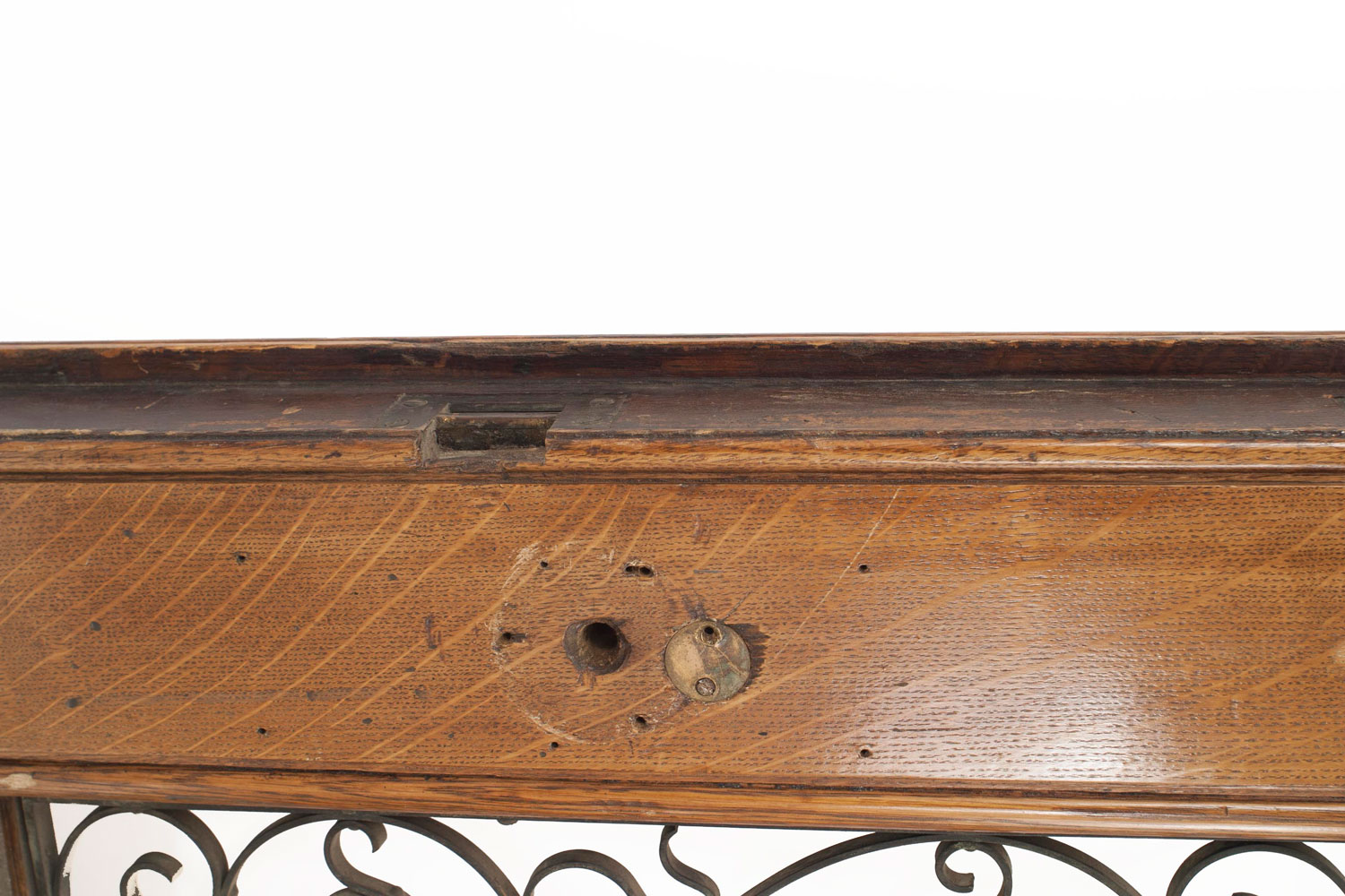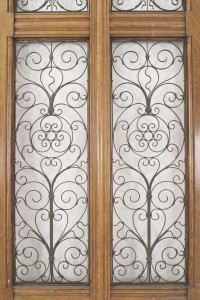 Italian Renaissance style (19th Century) large oak door with 4 copper filigree grill panels..