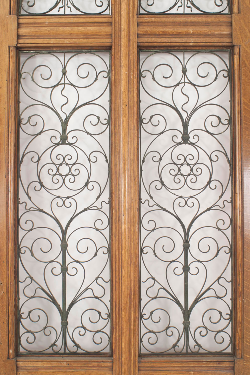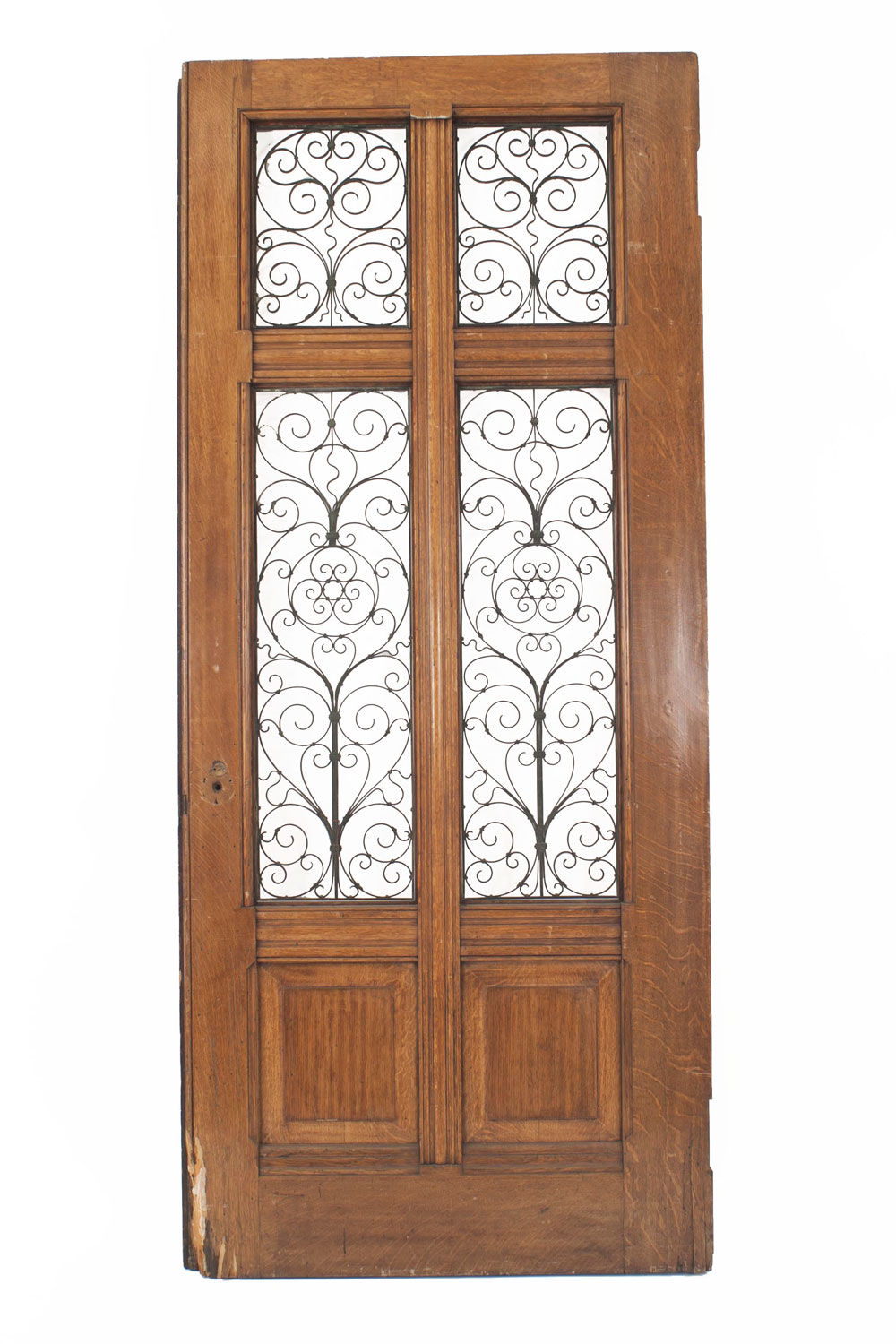 Italian Renaissance style (19th Century) large oak door with 4 copper filigree grill panels.