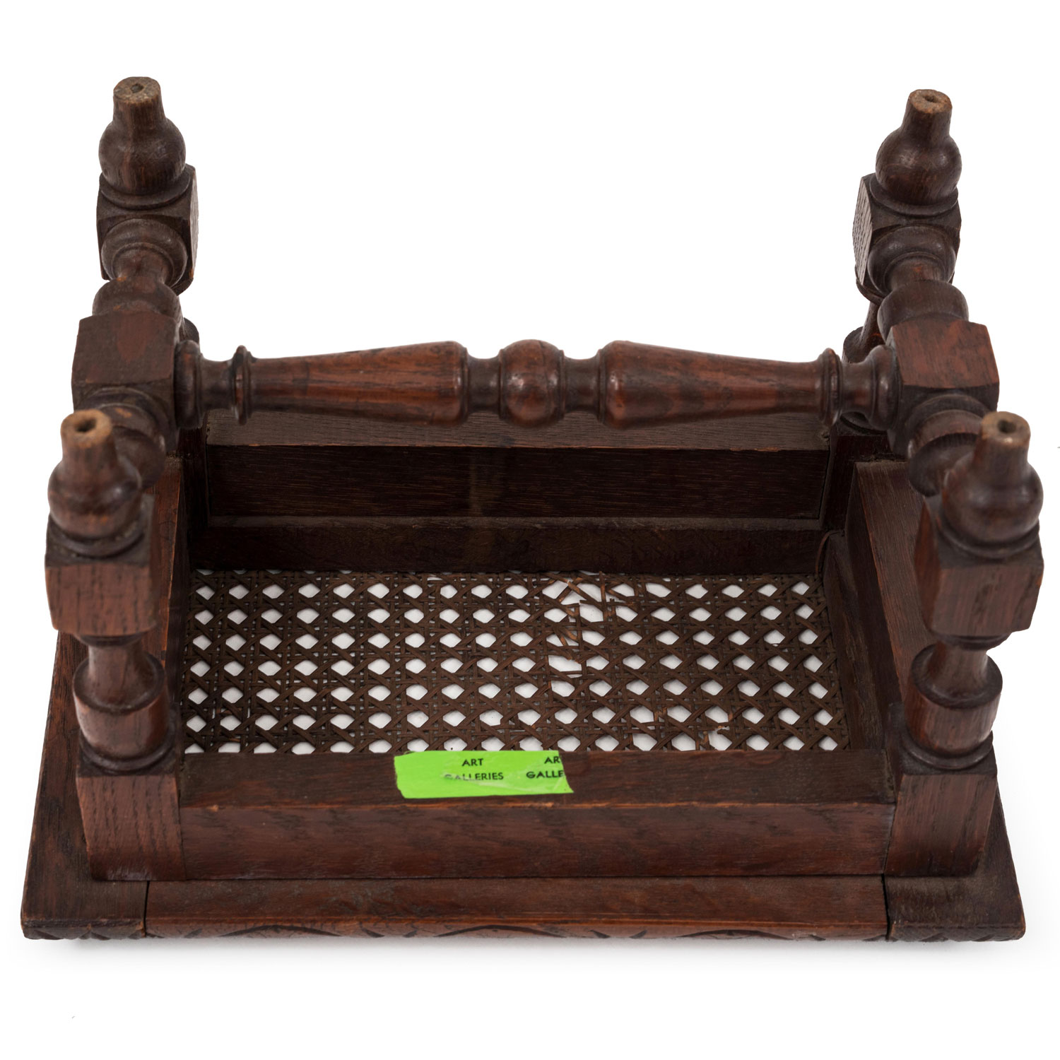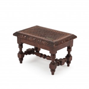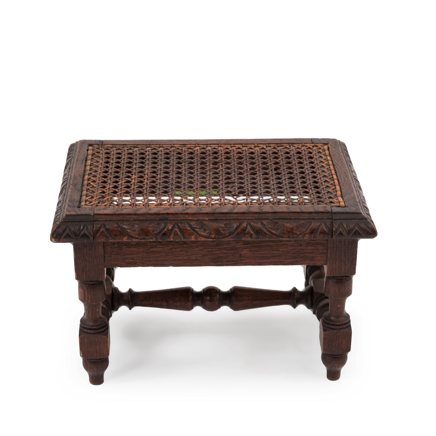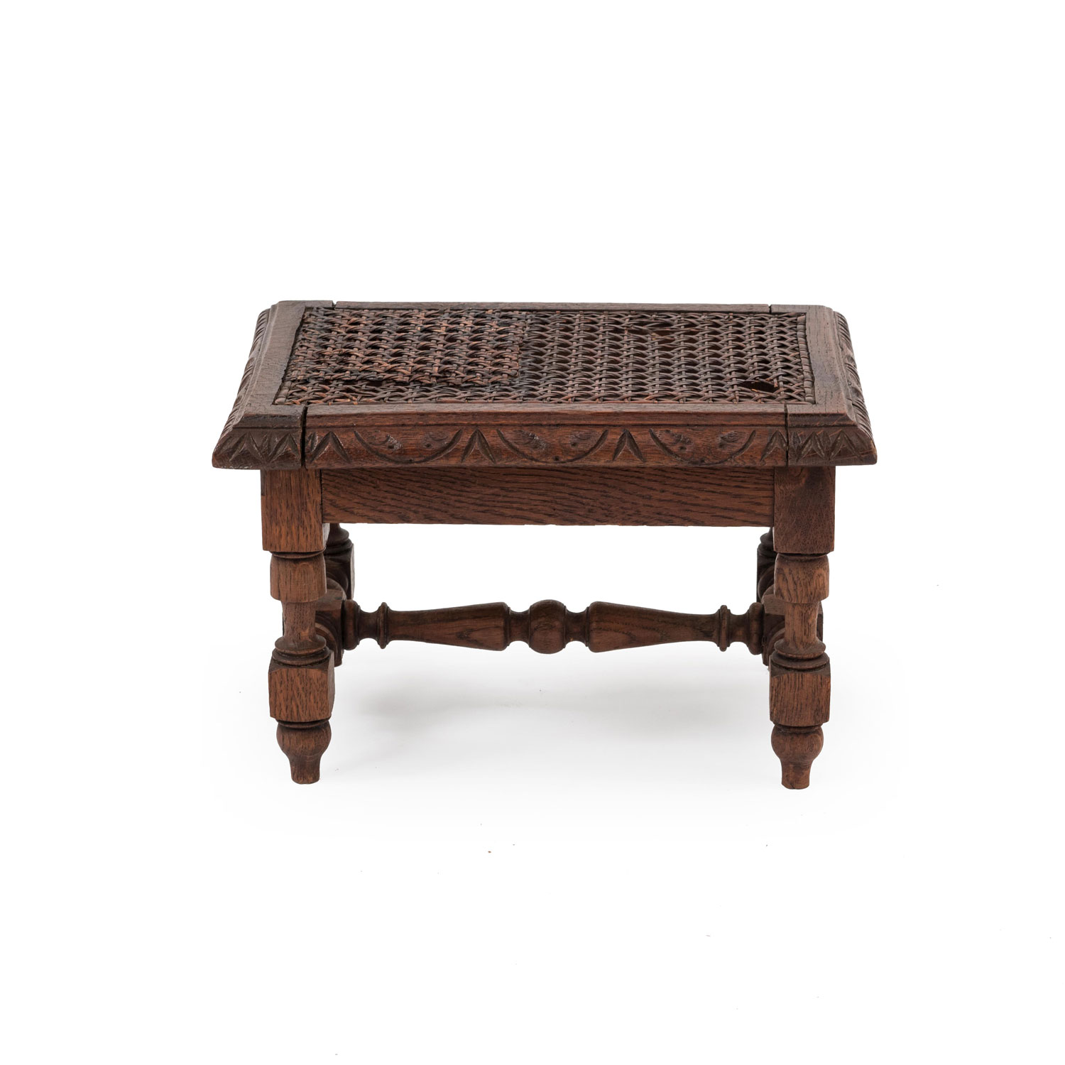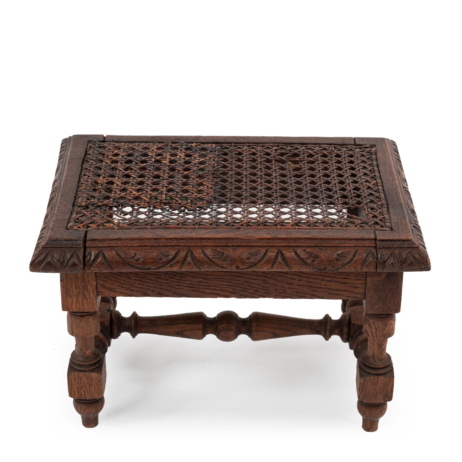 2 Italian Renaissance style oak rectangular foot stools with cane seat (PRICED EACH) (20th Cent.).
