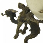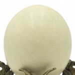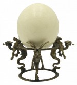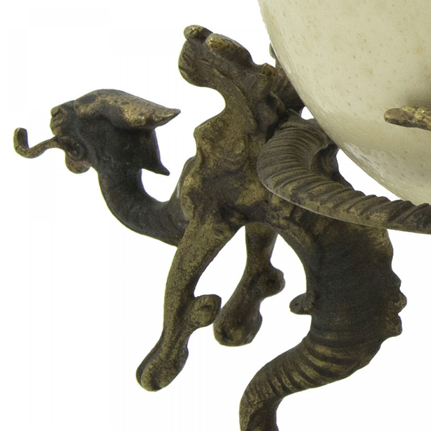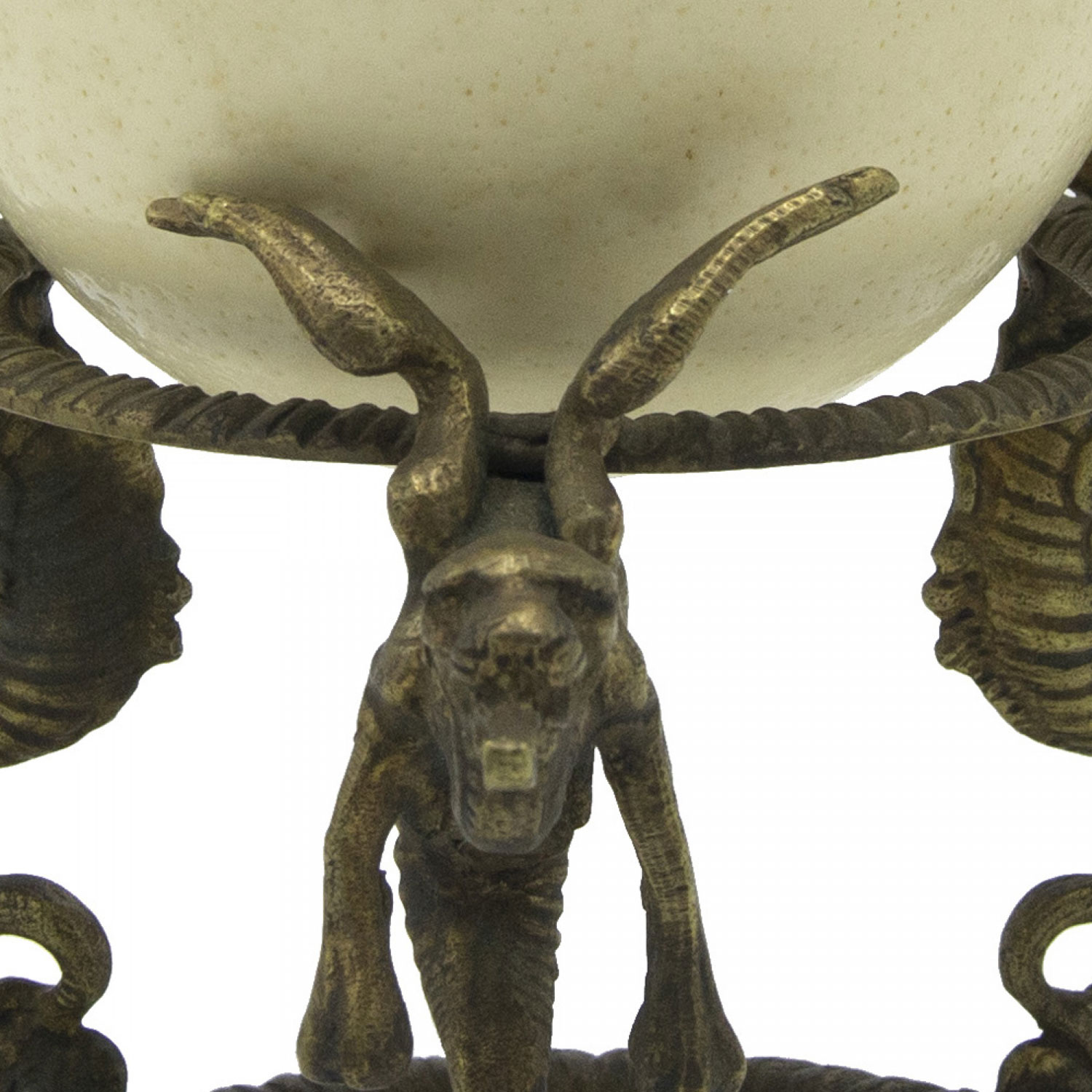 2 Italian Renaissance style objet d'art ostrich eggs mounted on bronze triple griffin bases (19/20th Cent) (PRICED EACH)