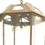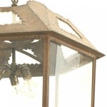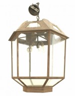 Italian Renaissance-style 6 sided glass lantern with an iron decorative top section.