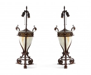 Pair of Italian Renaissance Style Iron and Alabaster Table Lamps