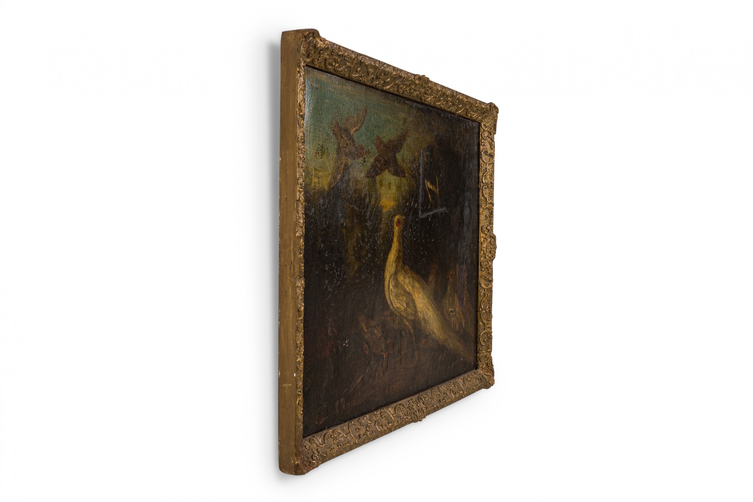 Italian Renaissance-Style Oil Painting of a White Peacock and Other Birds in a Giltwood Frame