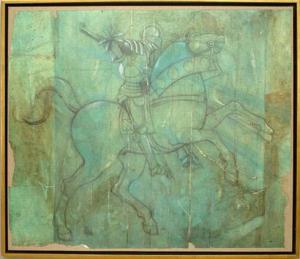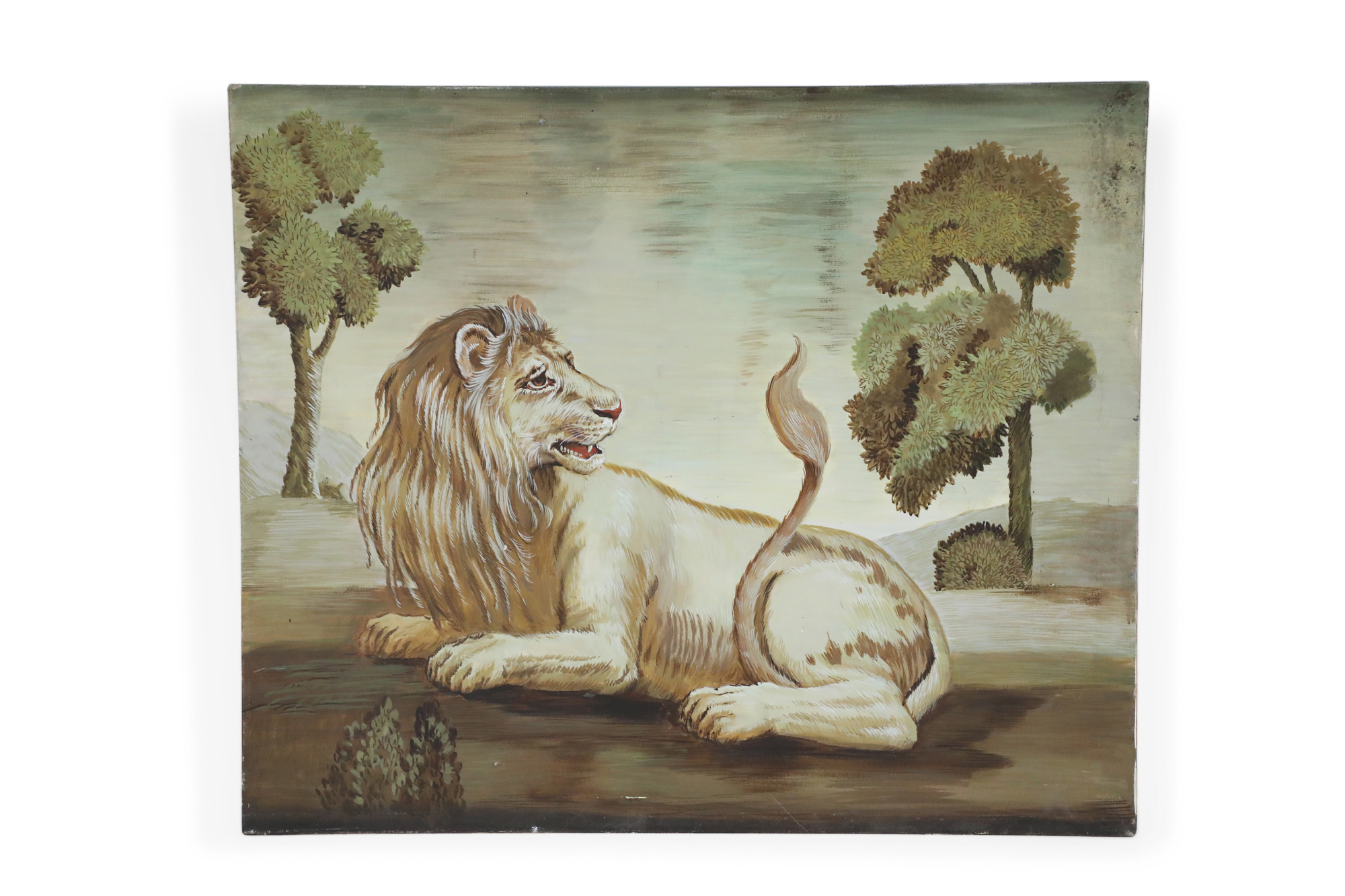 Style: Italian Materials & Techniques: Canvas, carved, painted, wood Category: Cleared Art Condition: Slightly visible L-shaped tear repair in canvas, some losses to giltwood frame. Good; Minor losses