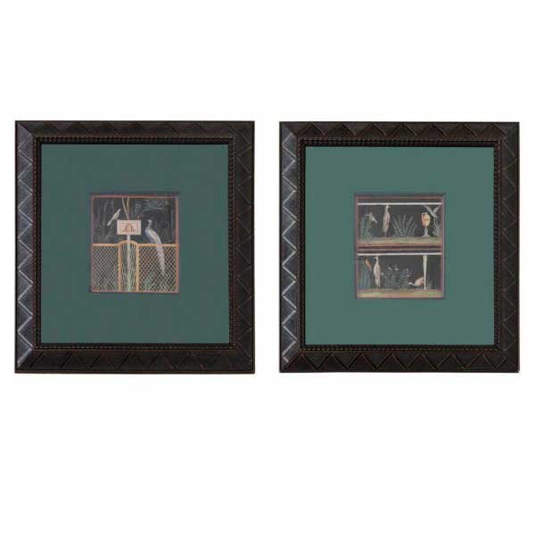 Italian Renaissance-style (19th Century) oil painting on canvas depicting a white peacock in a garden surrounded by other birds in an ornately carved giltwood frame.