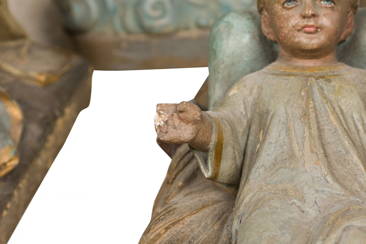Style: Italian Materials & Techniques: Painted, terra cotta Category: Accessories/Décor/Bric-a-Brac Condition: Minor chips and losses, shows wear consistent with age. Good; Minor losses